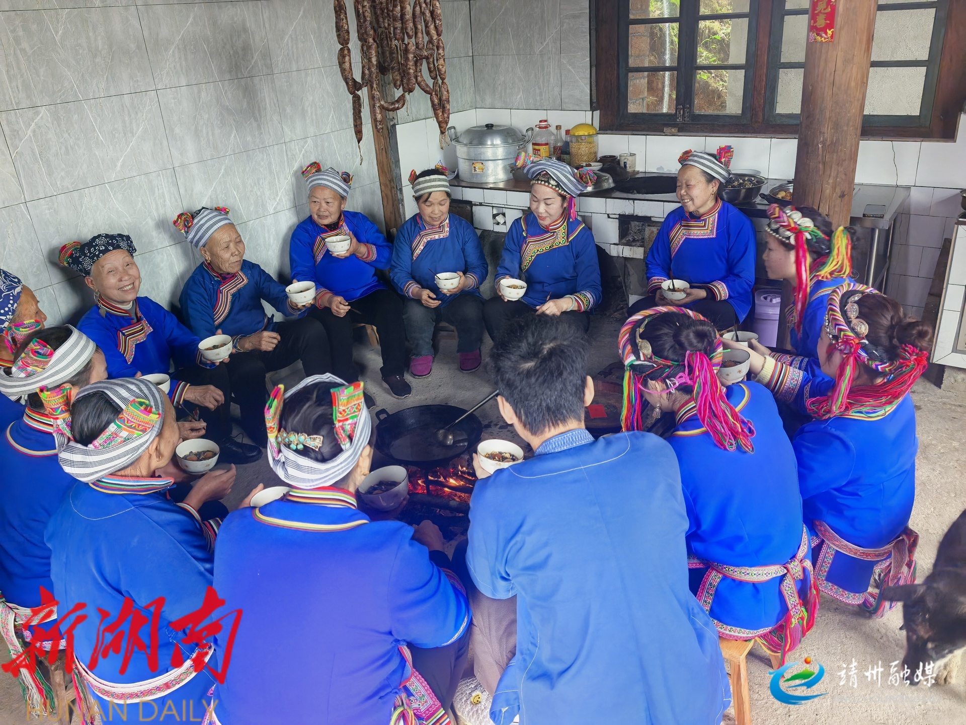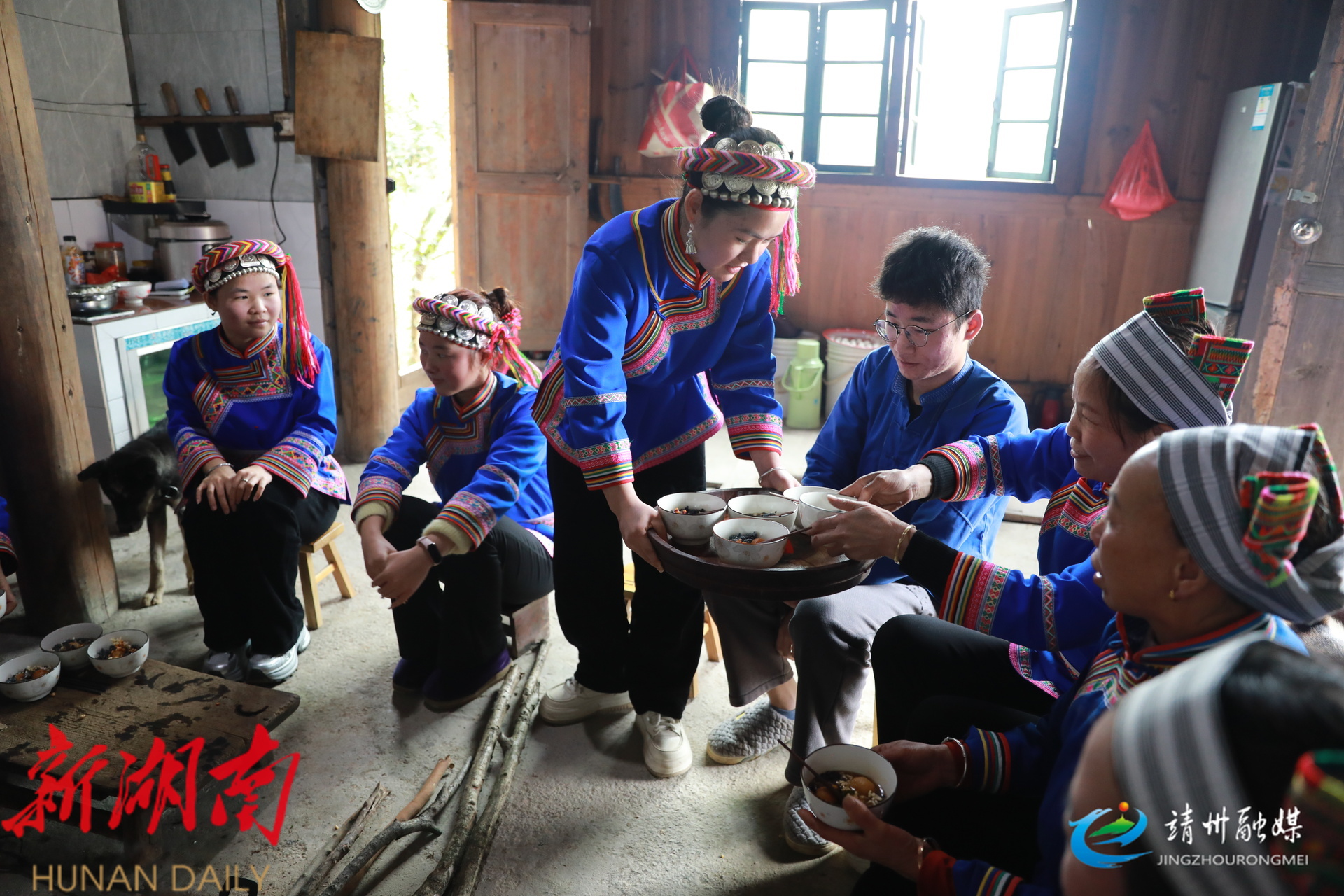 邻里们围坐一堂,手捧热油茶,边吃边聊、笑语阵阵,有人兴起唱响苗侗山歌,悠扬歌声伴着油茶香飘散在村寨中。“以前吃油茶是日常过早,现在做一锅邀邻里共品,成了联络感情的方式。”村民龙兰秀说。