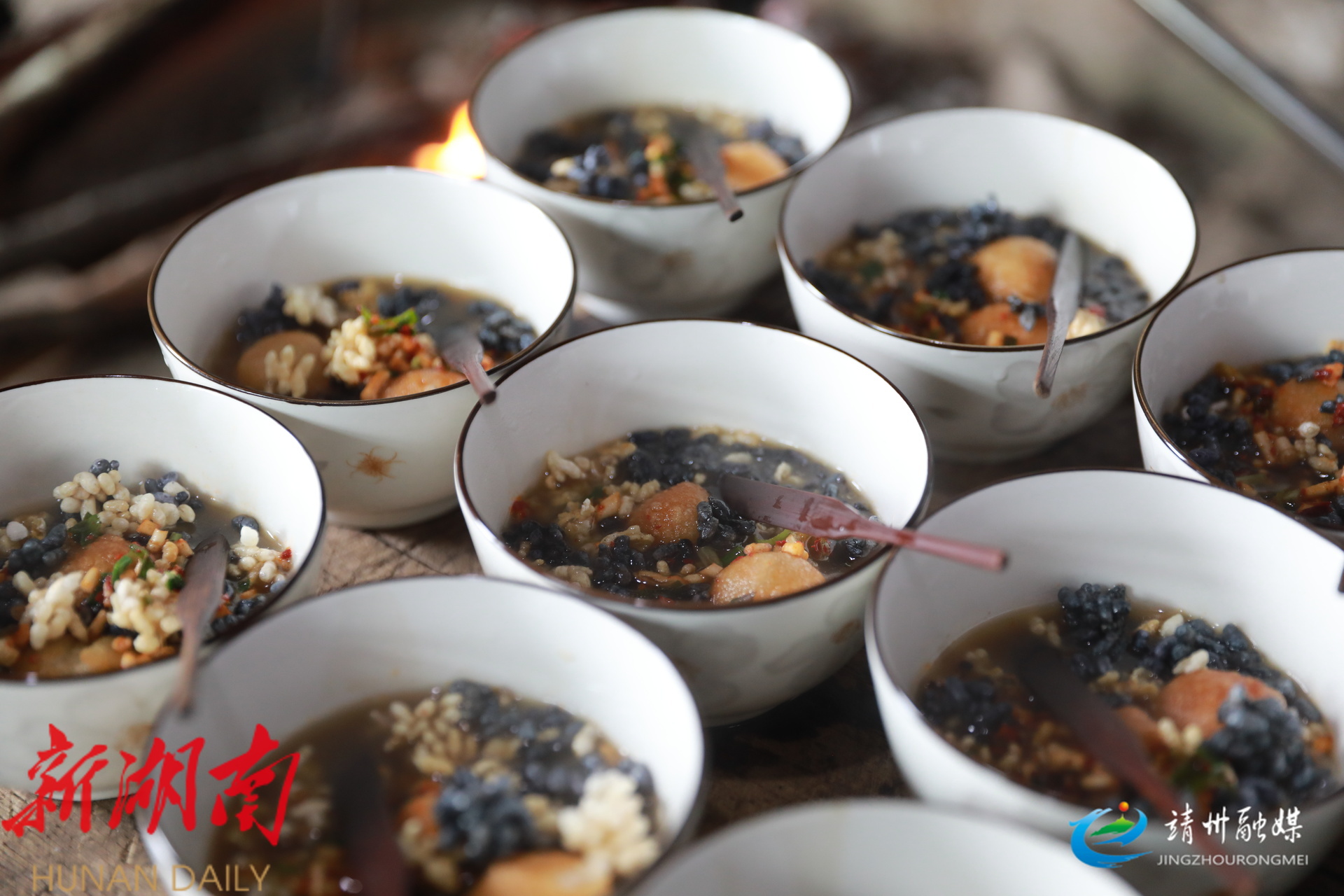 油茶是靖州一带的传统特色美食,凭借醇厚的口感和独特的制作工艺,成为当地苗侗同胞生活中不可或缺的味道,更是新春佳节里,家家户户用来招待亲友、联络邻里的必备佳品。