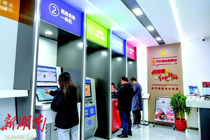 关口街道长兴社区党群服务中心设置了税务自助一体机、人社服务自助一体机等设备,居民可“一站式”办理相关业务。彭红霞
