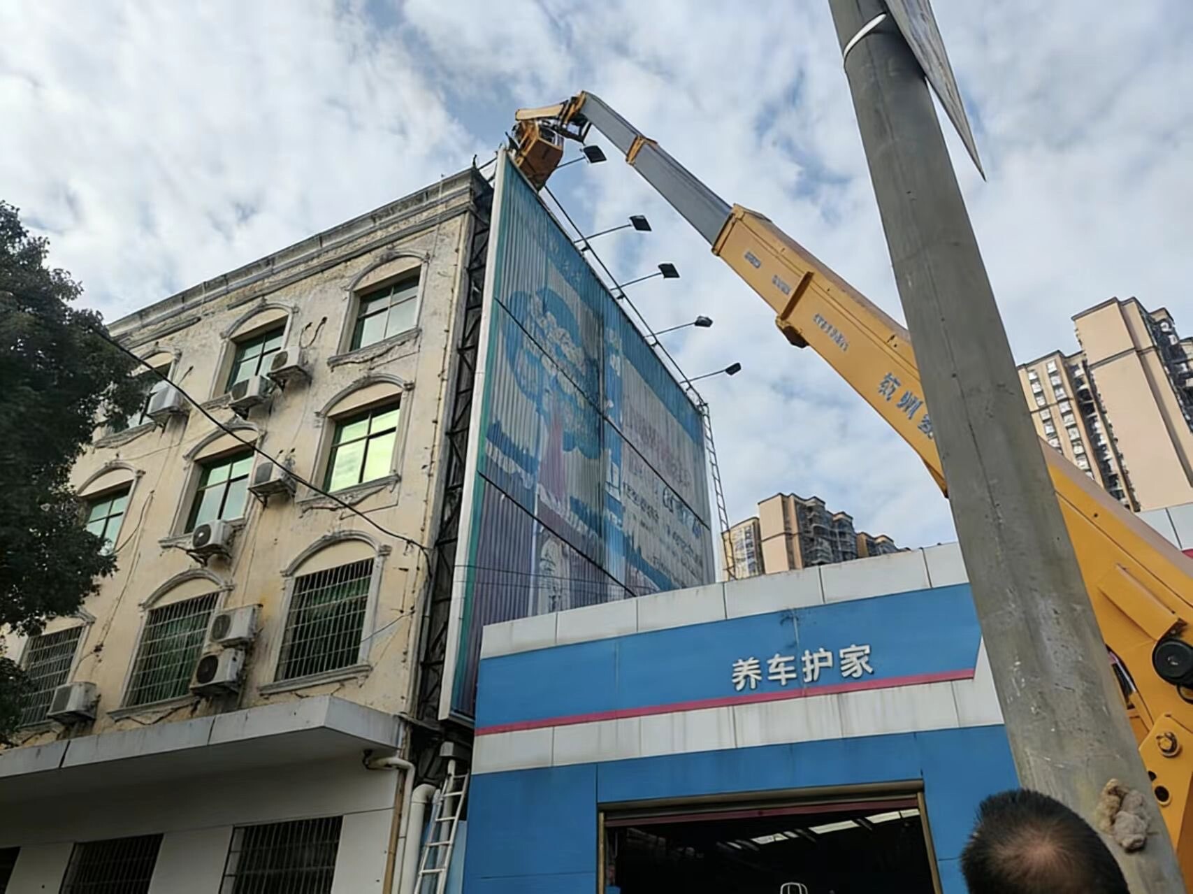 衡东城管拆除巨型危旧广告牌 筑牢"头顶安全"防线