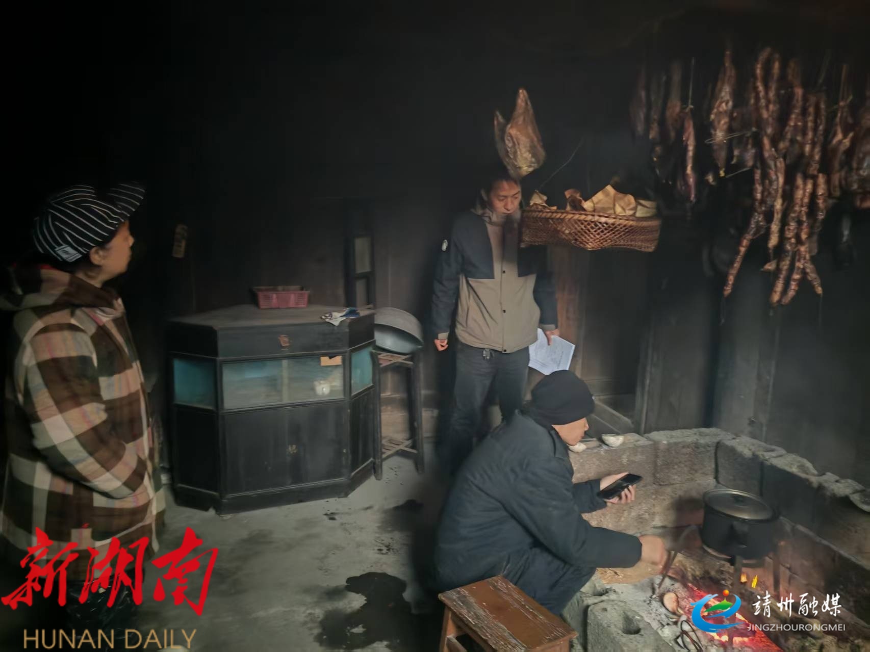 “王大爷,您家熏腊肉的铁桶离木墙太近了,得挪远些,电线也有点老化,记得尽快更换!”在甘棠镇地灵村,镇、村及驻村干部组成排查组,逐户检查电路、燃气、取暖设备等重点部位,排查用火用电安全隐患,现场提醒整改并登记台账。同时,该镇组织党员、村民代表担任 “专职打更人”,每晚7时30分沿街巷巡逻喊话,用扩音设备循环提醒消防安全。