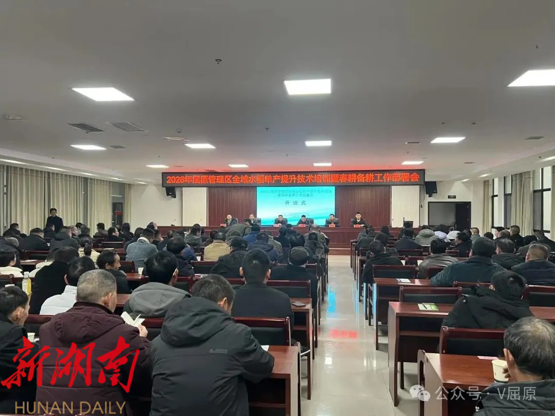 湖南日报·新湖南客户端2月6日讯(屈原区农业农村局供稿) 春回大地,农事渐兴。为深入贯彻落实区党委农村工作会议精神,抓实抓细春耕备耕工作,全力推动全区农业高质量发展,2月5日,区农业农村局召开2026年全域水稻单产提升技术培训暨春耕备耕工作部署会。区党委委员、区党委管委会办公室主任李德君出席开班仪式并致辞,会议邀请湖南杂交水稻研究中心专家和隆平高科信息技术有限公司相关负责人现场授课,区农业农村局主要负责人、各乡镇农业分管领导及农技员、新型农业经营主体代表、各村农业专干等213人齐聚一堂,“充电蓄能”迎接春耕。