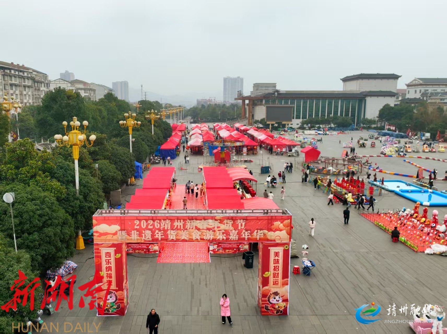 (记者 夏源懋 )2月5日,靖州苗族侗族自治县2026年新春临时年货市场在县民族广场正式开放,不少市民游客前来采买年货,浓郁年味扑面而来。