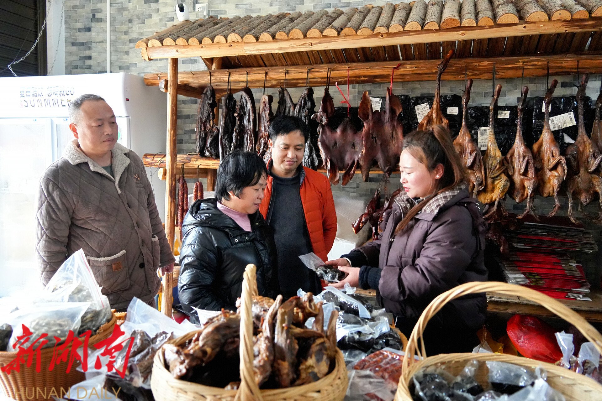为保障供应,店铺还提前备货,坚持选用本地土猪、传统柴火熏制工艺,严把品质关。同时,开通线上订单与同城配送服务,将地道腊味销往县内外,让更多人品尝到洞口年味。