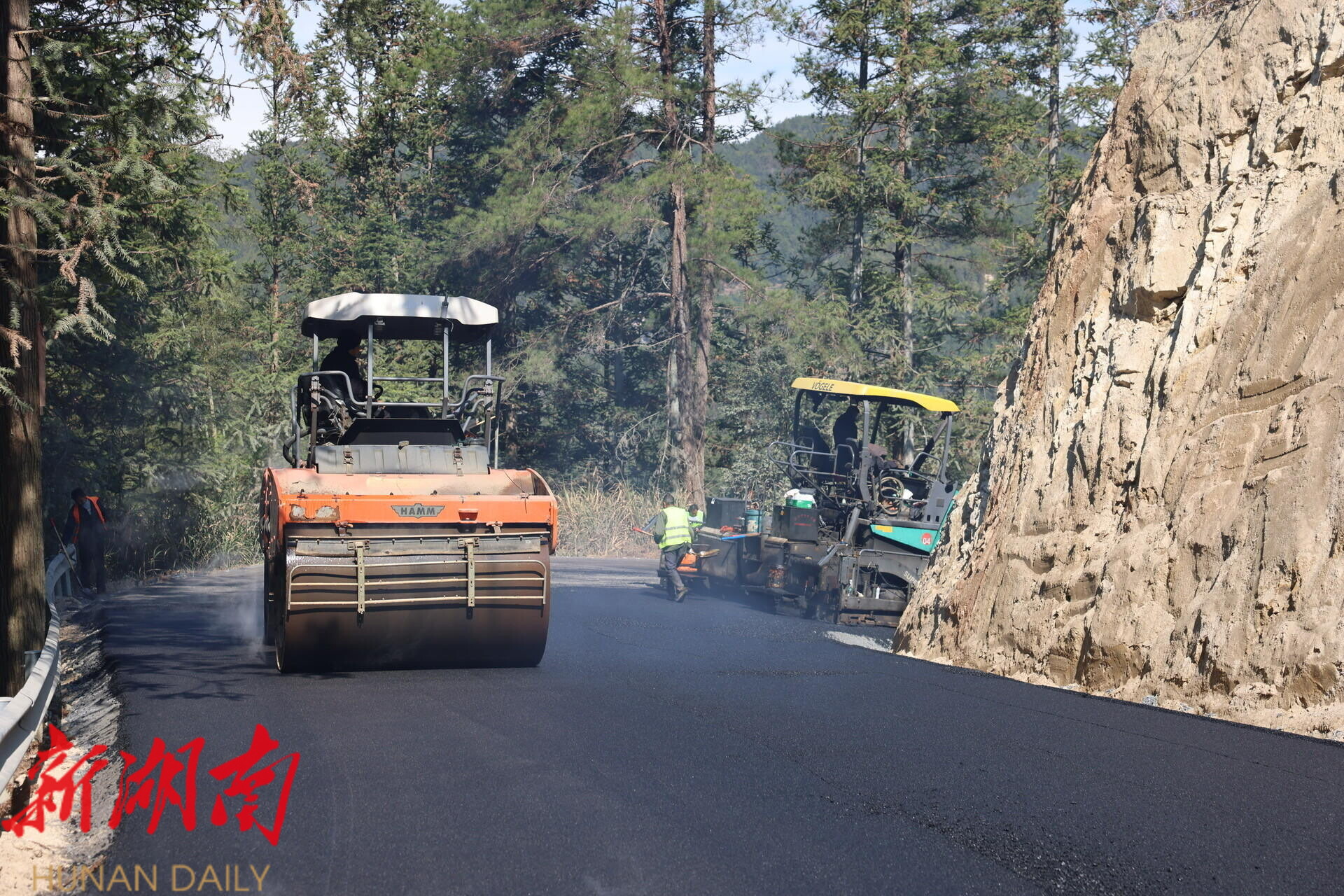 湖南省金达工程建设有限公司项目副经理曹文辉: 这次改造不仅提升了宽度,更注重路基强度和行车舒适性、安全性,就是要为乡亲们和来瀑布旅游的游客建一条放心路、致富路 。