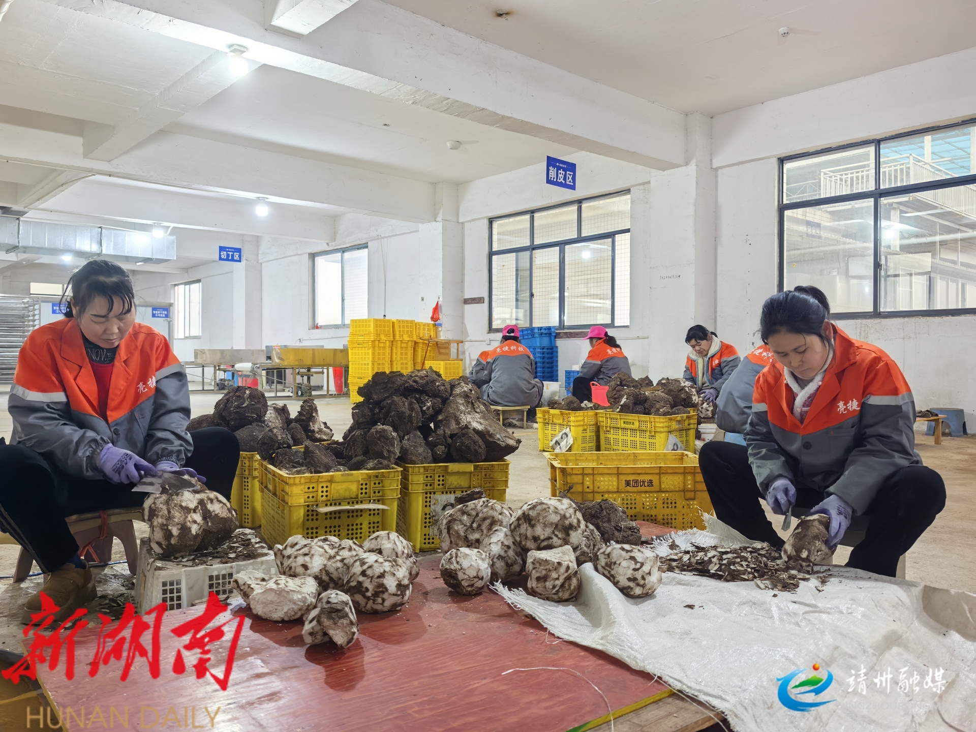 年关将至,靖州亮捷茯苓科技有限公司的生产车间里一派繁忙景象。机器轰鸣中,新鲜茯苓经标准化削皮、切丁、烘干后由自动打包机完成包装,。一旁的直播室内,主播正实时向网友推介产品、解答咨询。