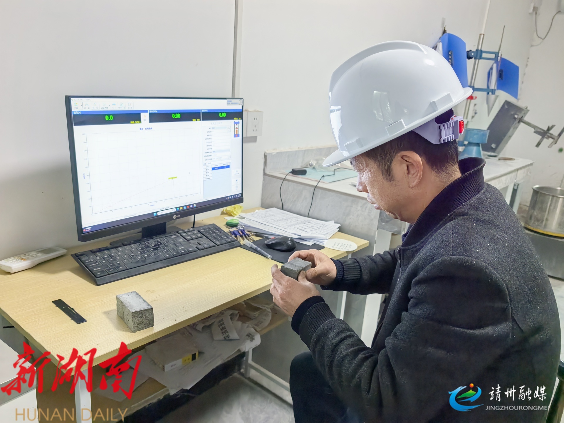工作人员正在测试水泥胶砂强度(钦苏芬 摄)