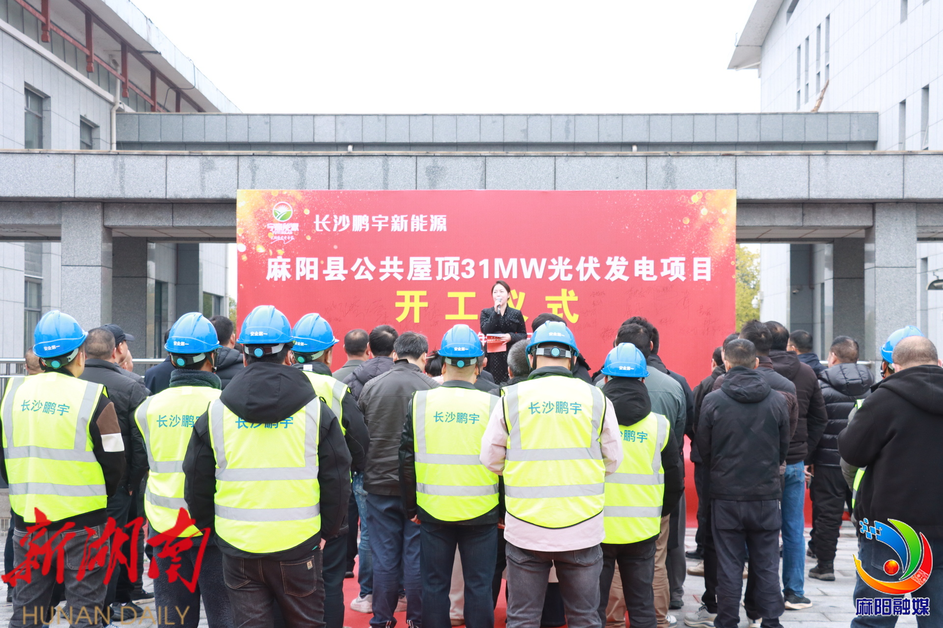 麻阳 融媒2月6日讯(记者 彭瑾) 新春伊始,麻阳苗族自治县31兆瓦公共建筑屋顶分布式光伏项目正式开工。这个总投资1.02亿元的民生工程,将在一年内让高村镇机关事务中心、医院、学校等公共建筑的闲置屋顶“活”起来,成为苗乡百姓的“阳光存折”。