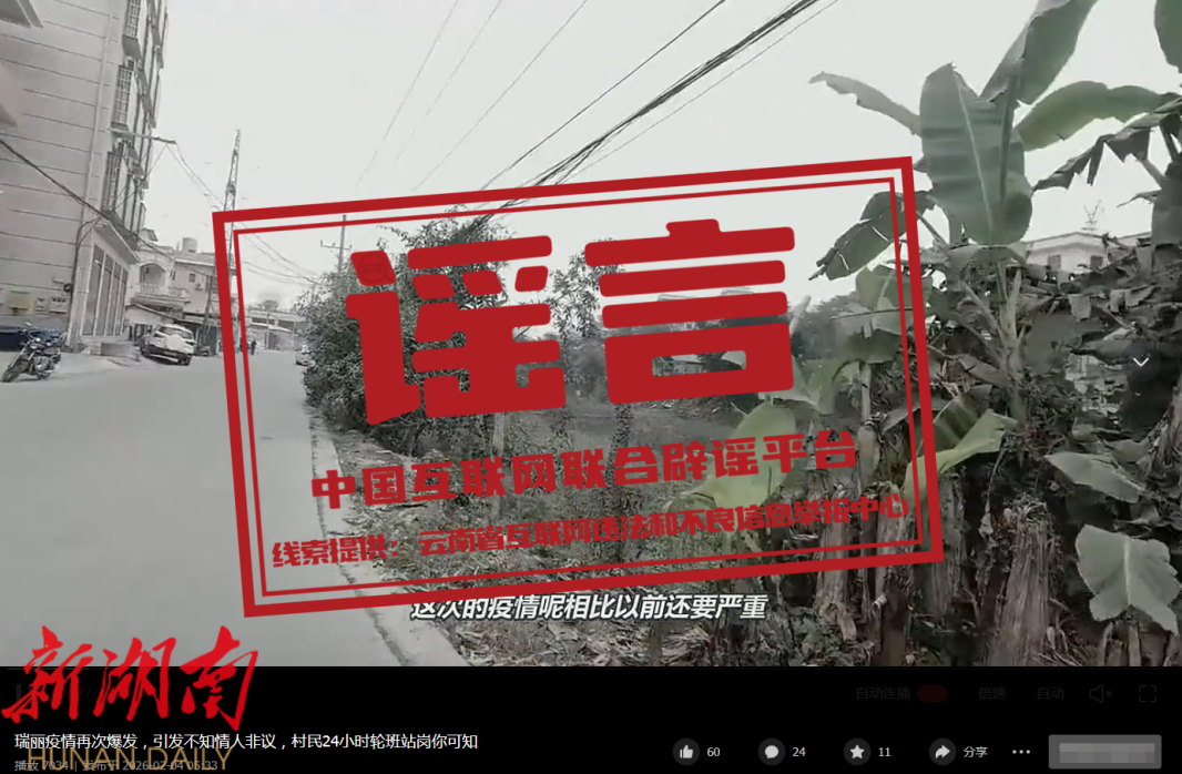 2026年以来,互联网平台流传多条关于“云南瑞丽再次暴发疫情采取封城措施”的不实视频信息,引发关注。经核实,网传视频内容系搬运旧闻,与云南省瑞丽市当前实际情况严重不符。瑞丽市始终严格执行国家、省、州关于疫情防控的各项工作部署,建立健全常态化疫情监测预警机制。目前,瑞丽市未发生重大传染病疫情,也未采取任何“封城”措施。全市生产生活秩序正常,边境口岸运行平稳有序。公安部门将根据具体情况依法对谣言发布者进行处理。(来源:“网信云南”微信公众号、“健康瑞丽”微信公众号)