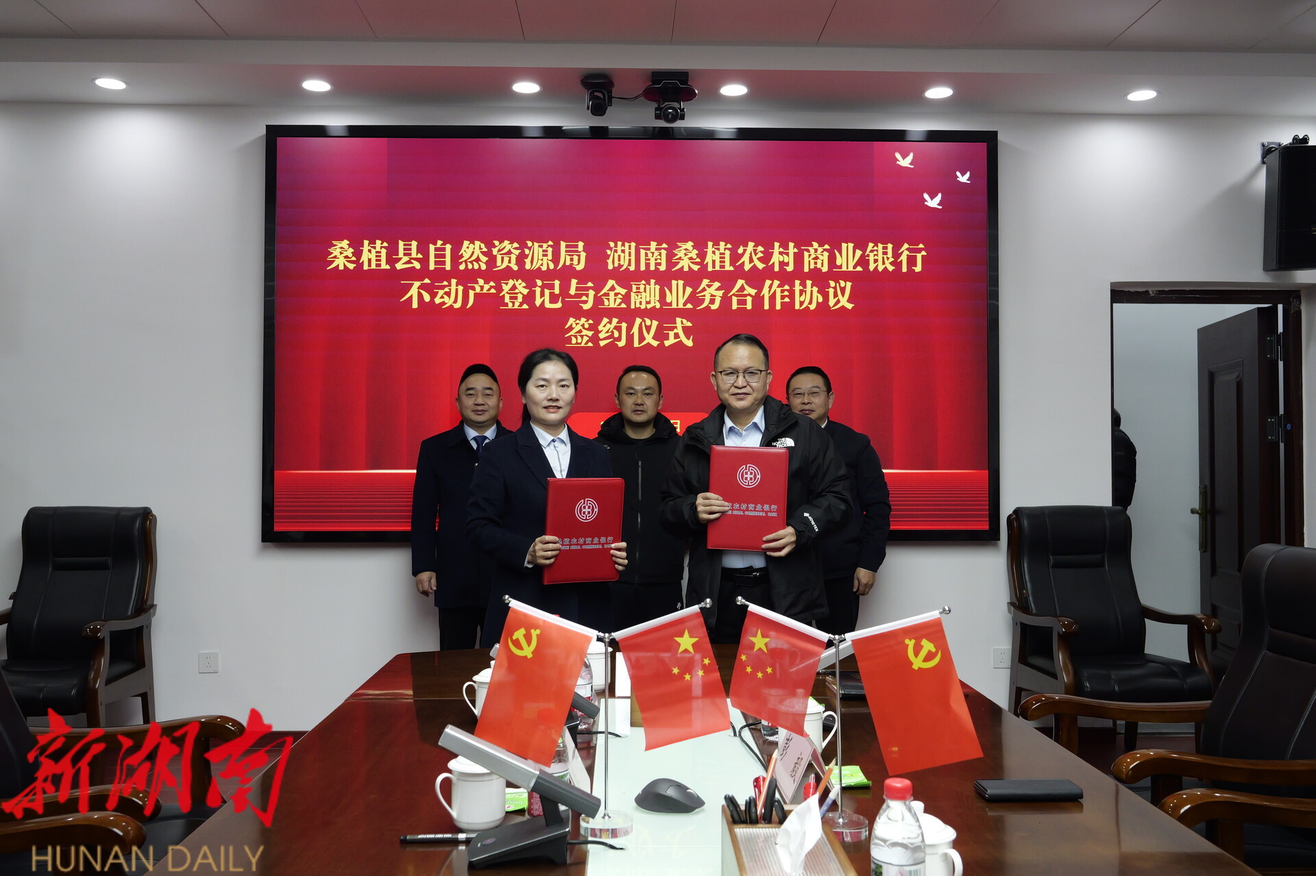 湖南日报·新湖南客户端2月6日讯(通讯员 刘静)2月6日,桑植县自然资源局与湖南桑植农村商业银行不动产登记与金融业务合作签约仪式举行,副县长胡辉出席。