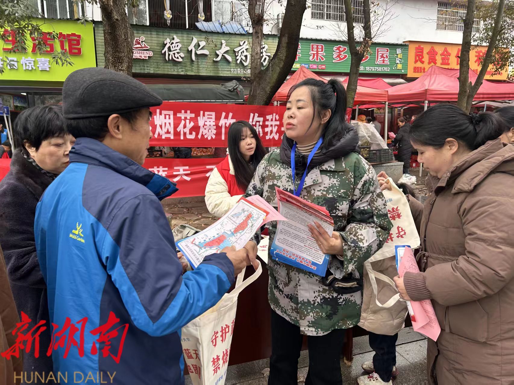 中方融媒2月7日讯 (通讯员:李卓峻)春节将至,为守护辖区群众生命财产安全、倡导文明环保新风尚,2月6日上午,中方镇联合各社区,借助赶集日人流密集优势,在中方县城中心市场开展禁止燃放烟花爆竹、森林防灭火、秸秆禁(限)烧等知识宣传,把安全环保知识送到群众身边。