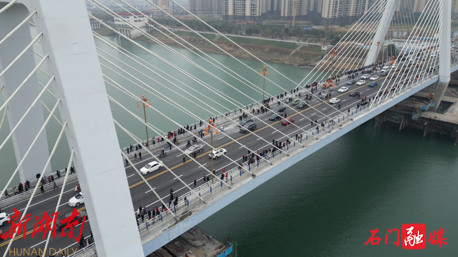 梯云大桥的建成通车,圆了石门人民的跨河畅行之梦,大幅缓解城区通行压力,让两岸群众出行更便捷、往来更顺畅、发展更融通,不仅是石门完善城市交通路网的重要突破,更是推动南北城区融合发展、提升城市品质、赋能县域经济高质量发展的重要支撑。