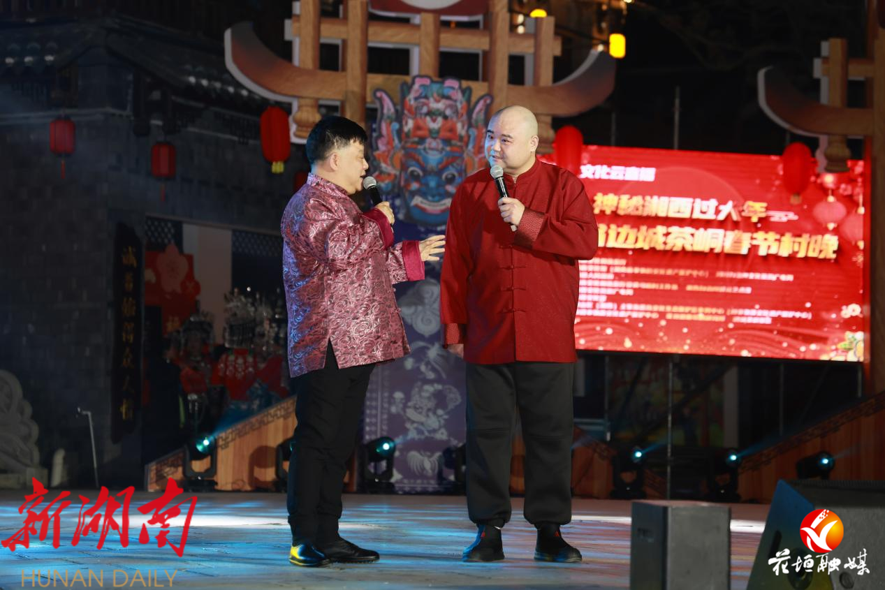 湖南日报·新湖南客户端2月7日讯(通讯员 龙兵 张庆港 张晗)2月4日至5日晚,边城茶峒景区灯火璀璨、欢声涌动,“神秘湘西过大年”边城茶峒春节“村晚”和返乡大学生音乐节在这里热烈开场。为当地群众和游客奉上了一台充满乡土风情与人文底蕴的文化盛宴。