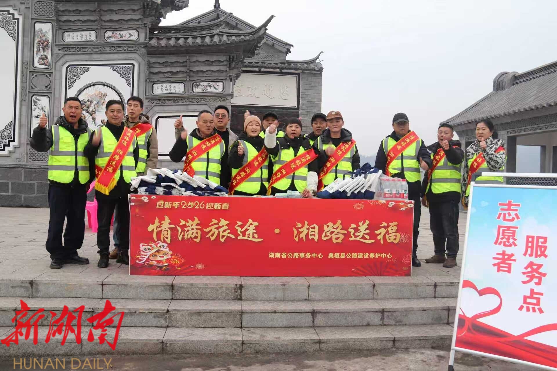 湖南日报·新湖南客户端2月7日讯 (通讯员何蜜 张红玉)春寒料峭挡不住归乡脚步,温情服务暖透春运旅途。2月5日开始,桑植县公路建设养护中心组织干部职工化身志愿者,在桑植东高速出口设立“情满旅途·湘路送福”志愿服务岗,以热情暖心的实际行动,为奔波在返乡团圆路上的司乘人员送去冬日里的温暖与新春祝福。