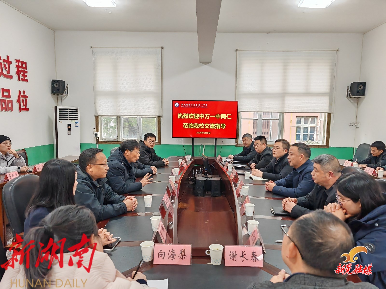 新晃融媒2月8日讯(通讯员:杨凌云)2月5日,中方县第一中学党总支书记周玉林一行11人,到新晃一中开展优生培养专题学习交流活动。