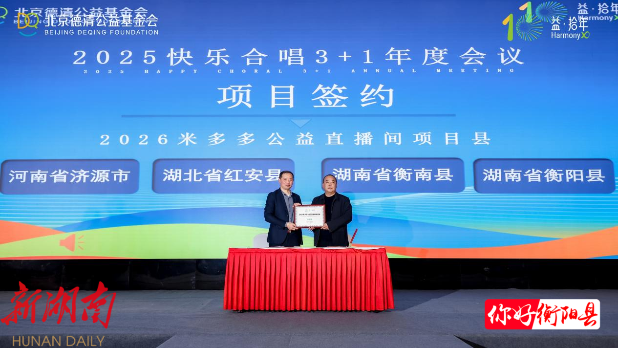 会上,衡阳县正式与北京德清公益基金会签署合作协议,成为新一批“快乐合唱3+1”项目合作县,标志着衡阳县乡村美育版图进一步拓展,迈向县域联动、协同推进的新阶段。