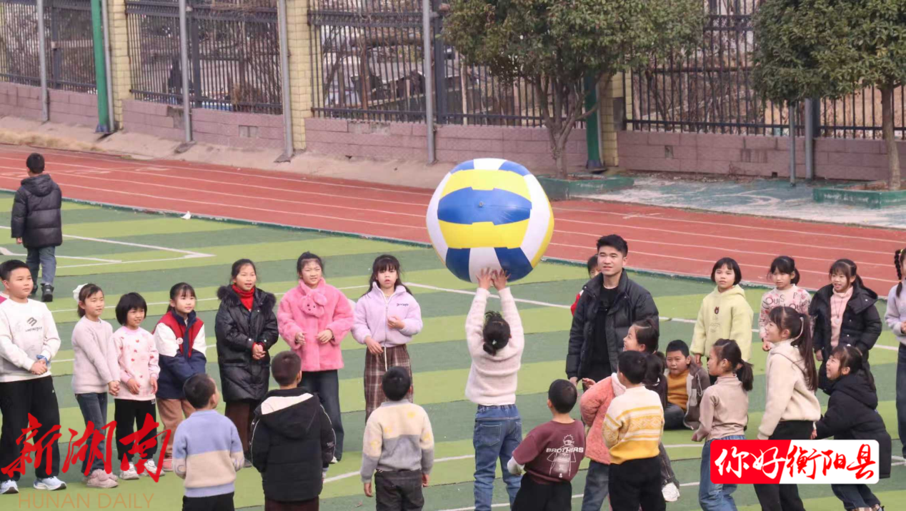 礼堂里,充满活力的“火车接龙”游戏正在进行。志愿者和同学们手搭着肩,连成一条长长的“小火车”,在欢声笑语中你追我赶,现场气氛热烈。操场上,在志愿者的引导下,同学们围成一个大圈,兴奋地将巨型排球一次次高高托起,在尽情奔跑与协作中,享受着运动带来的快乐与释放。