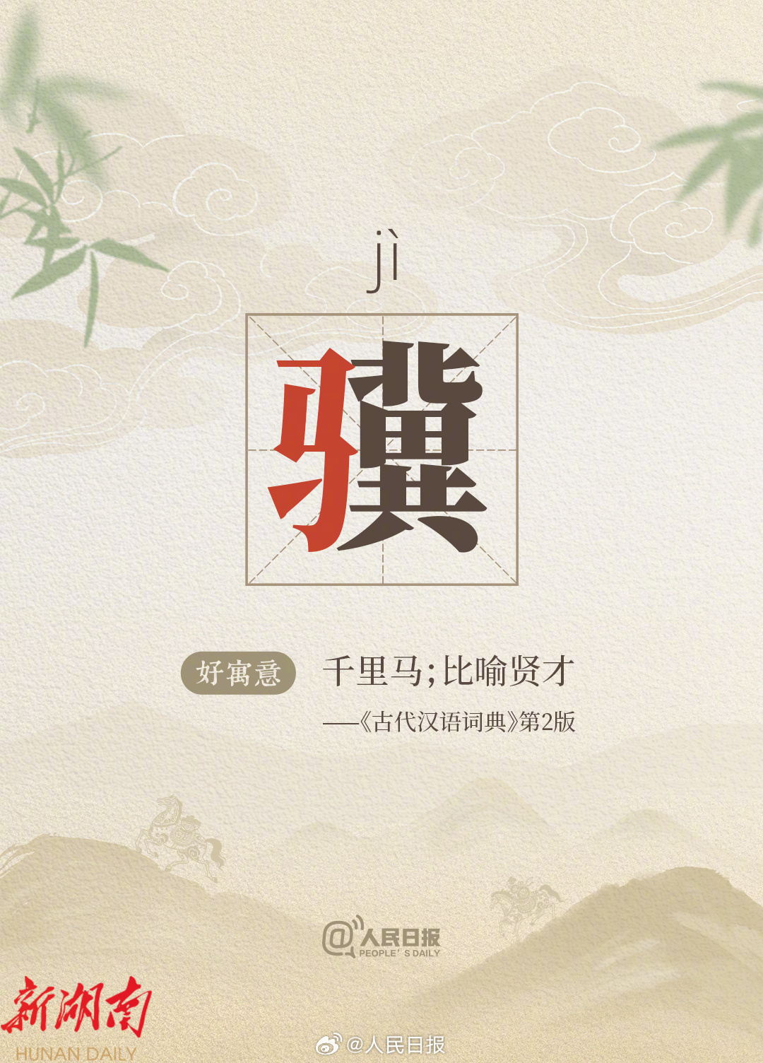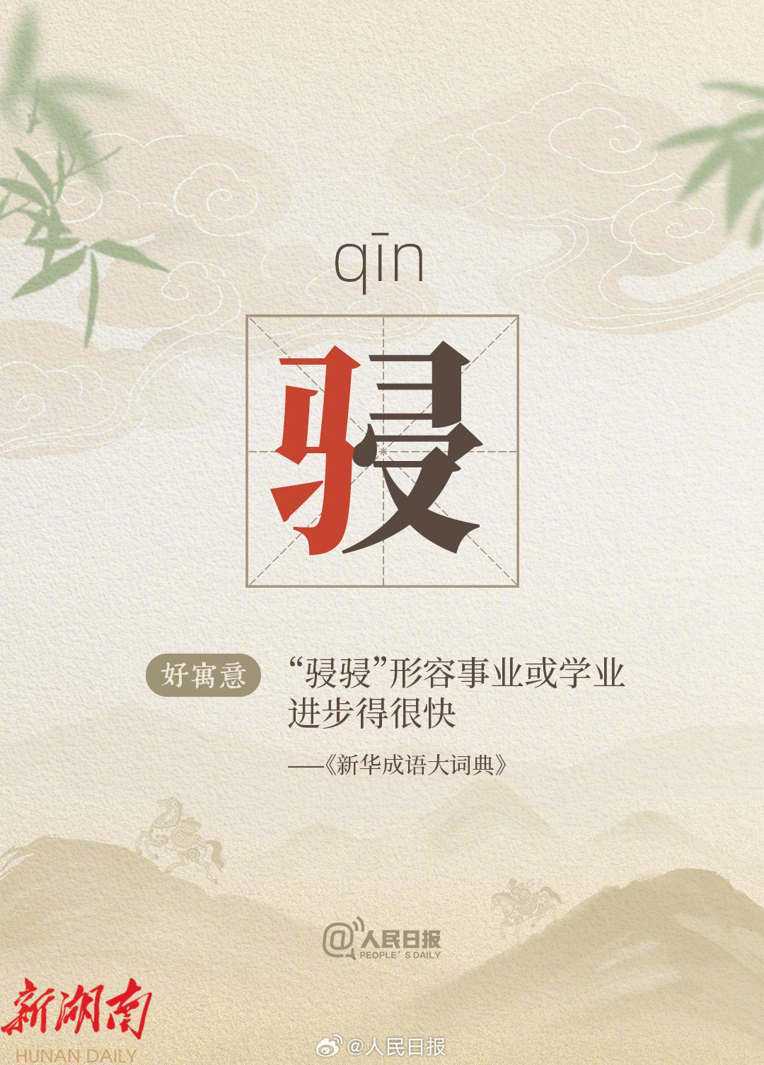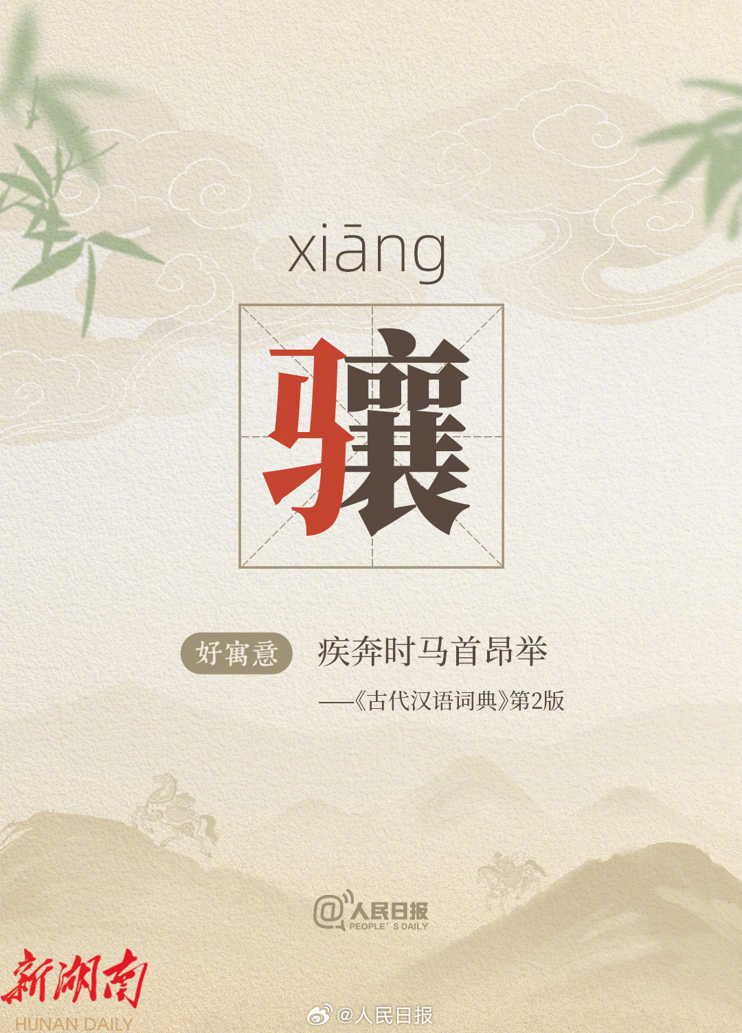 “驰”有“向往”之意,“骁”有“勇猛矫捷”之意,“骥”常被用作比喻“贤才”,“骎骎”形容事业或学业进步迅速……丙午马年新春将至,一组以“马”为部首的字词↓↓取个好寓意,奔个好彩头,祝你马年骧首奋进、骎骎日上!