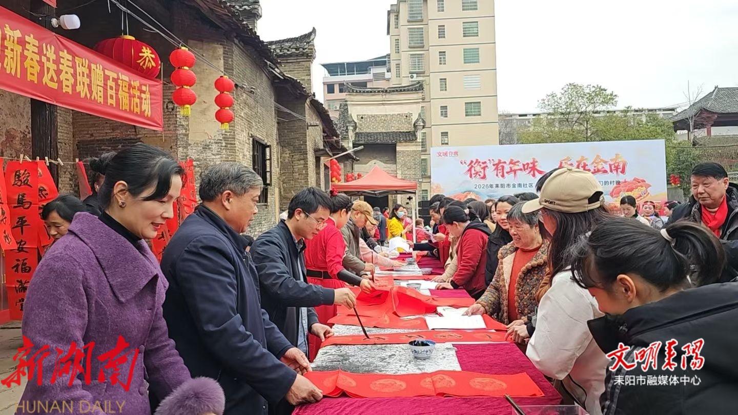 耒阳融媒2月5日讯(记者 刘喜 蒋境 雷坤 实习记者 欧阳资洁) 赶“村晚”,看非遗, 迎新年。2月4日下午,2026年耒阳市“文暖你我”群文轻骑队走基层之“‘衡’有年味,乐在金南”村晚在金南社区四组前坪热闹开演,为当地群众送上了一场丰盛的“文化年货”。市政协副主席、市文旅广体局局长陆小勇出席并致辞。