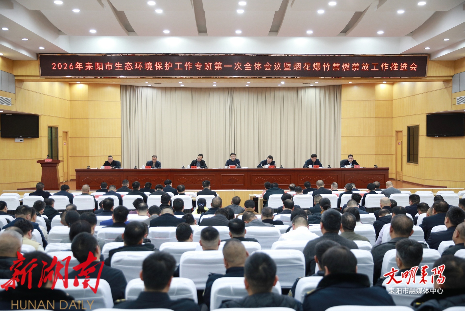 耒阳融媒2月4日讯(记者 袁成龙 曾志明) 2月4日下午,耒阳市生态环境保护工作专班第一次全体会议暨烟花爆竹禁燃禁放工作推进会召开。市委书记张润槐出席并讲话,他强调,要深入学习贯彻习近平生态文明思想,认真落实党中央决策部署和省、衡阳市工作要求,全力抓好突出生态环境问题整改,打好烟花爆竹禁燃禁放、秸秆禁烧攻坚战,推动全市生态环境持续稳定向好。市委副书记、代市长陈昌义主持会议。