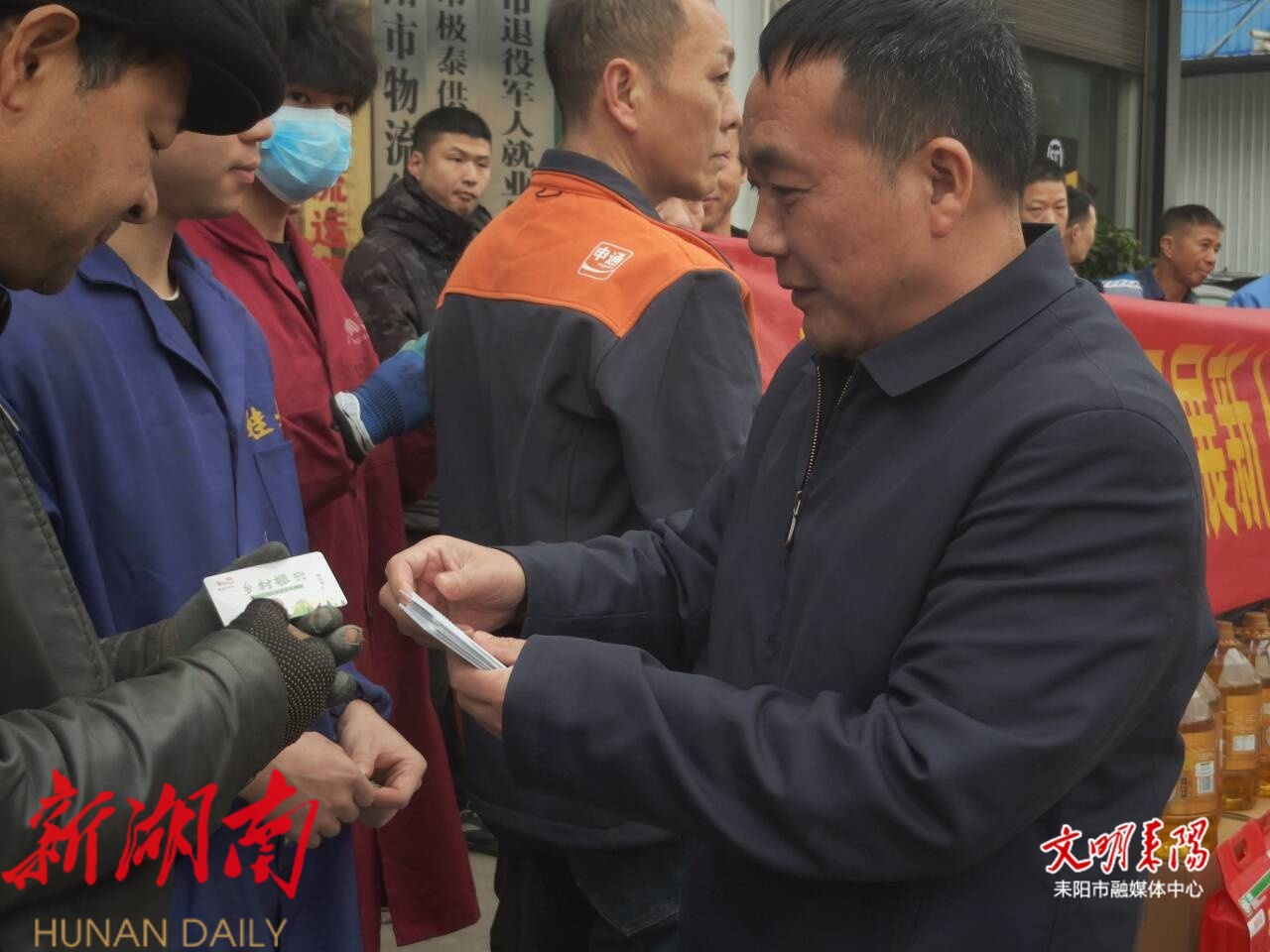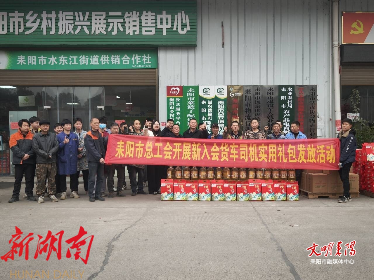 耒阳融媒2月6日讯(记者 李靖宇 刘喜 实习生 欧阳资洁) 2月5日,耒阳市总工会在福源乡村物流开展新入会货车司机实用礼包发放活动。为449名新入会货车司机送上“暖心礼包”,切实将党和政府的深切关怀与工会组织的暖心服务送到常年奔波在运输一线的货车司机身边。市人大常委会副主任、市总工会主席刘廷斌出席活动。