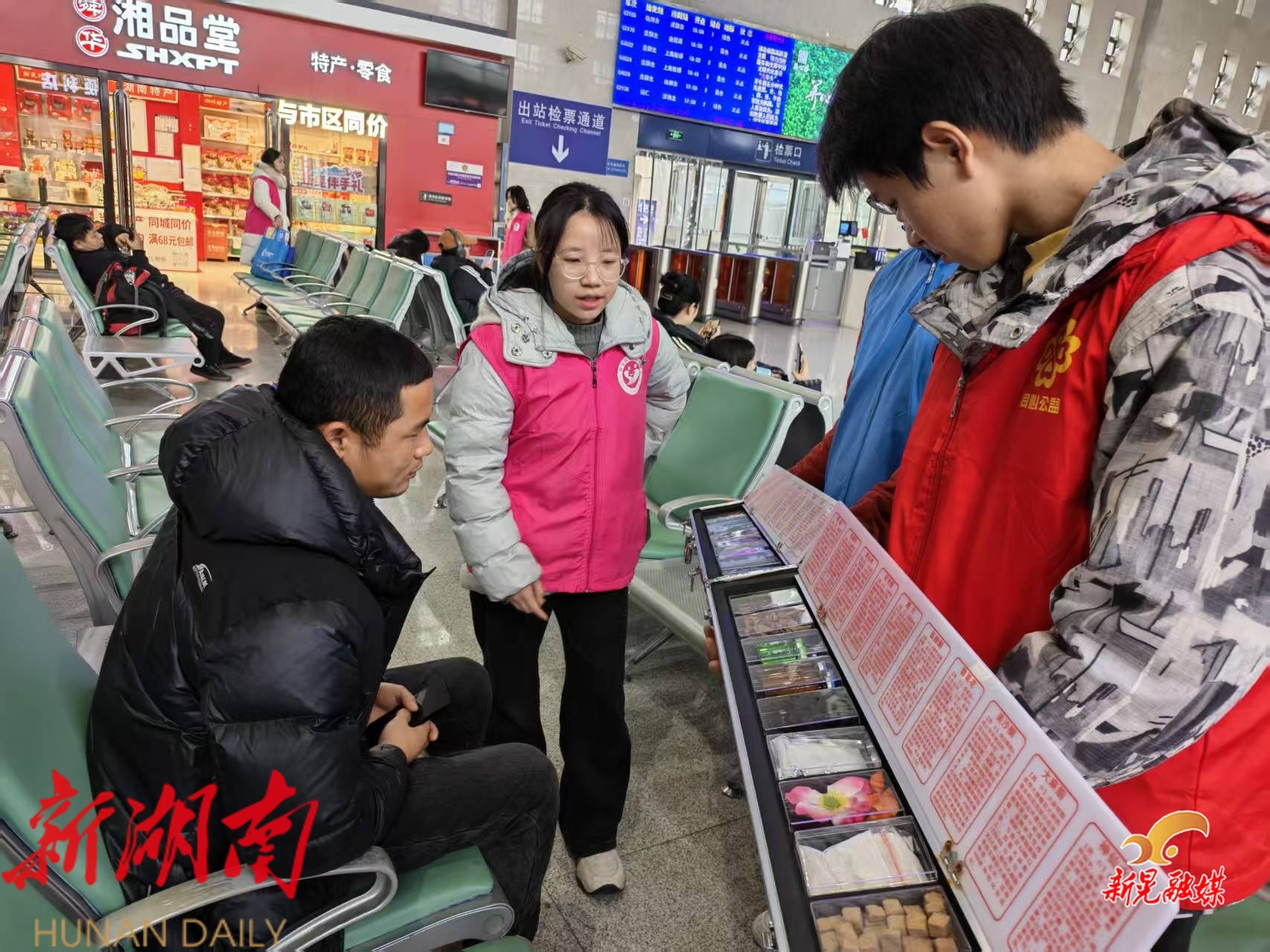 新晃融媒2月9日讯(通讯员:张武军 杨雨洁)2月7日,共青团新晃县委联合新晃侗族自治县交通运输局、新晃侗族自治县总工会,携手新晃微爱志愿者协会、新晃侗族自治县同心公益社会工作服务中心,在新晃西站开展2026年“暖冬行动,情满旅途”春运志愿服务活动,在为广大旅客提供常规暖心服务的同时,创新融入禁毒宣传主题,为平安春运筑牢一道坚实的“防毒墙”。