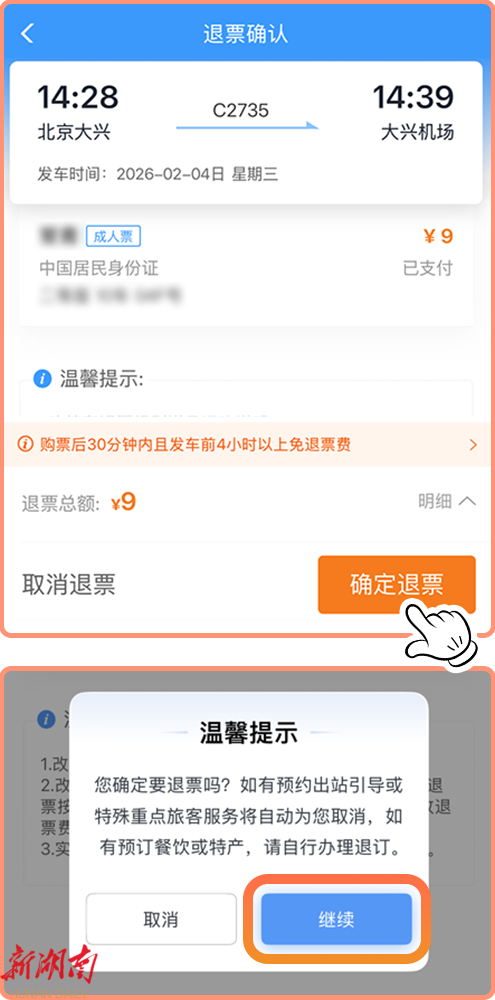 进行退票确认