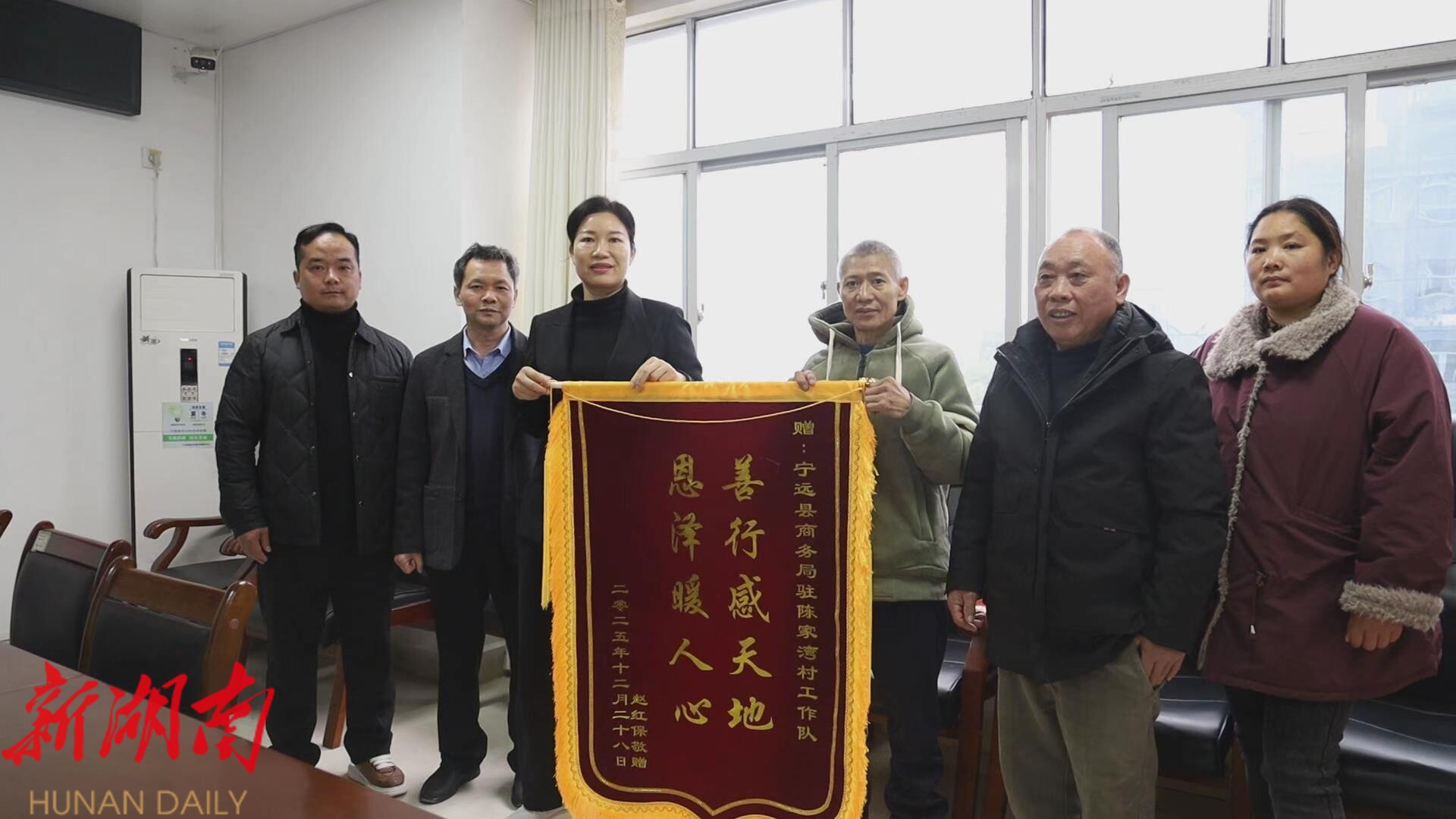湖南日报·新湖南客户端2月9日讯(通讯员 李丽恒 魏颖辉 黄杨) 近日,宁远县五龙山瑶族乡陈家湾村村民赵红保跟村干部和村民代表一道来到结对帮扶后盾单位县商务局,送上一面鲜红的锦旗,表达最诚挚的谢意。之前村民冯友贵、左维建两位村民先后送来了两面锦旗。