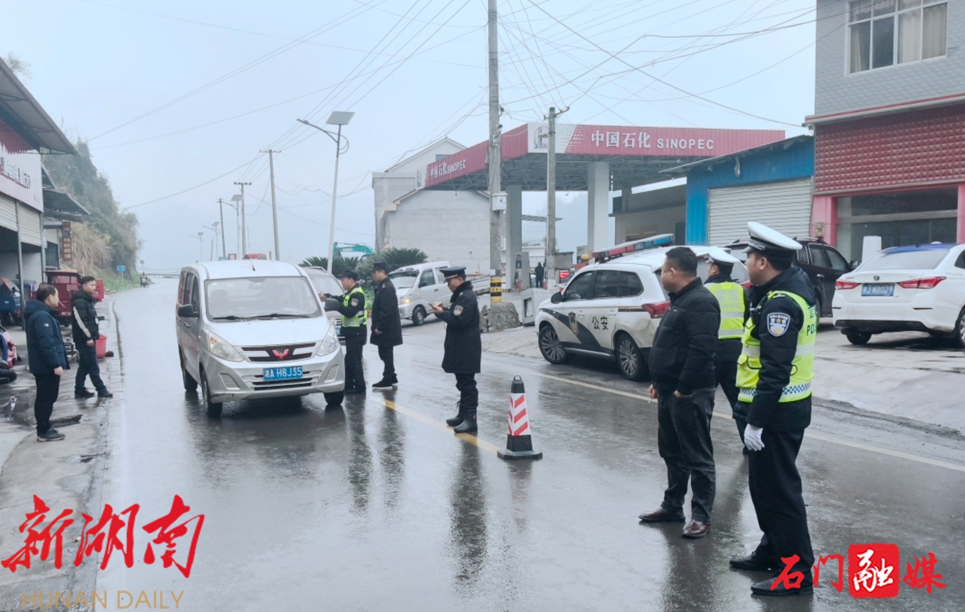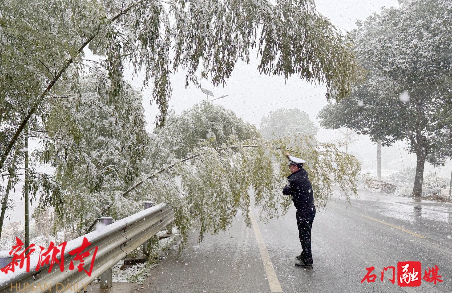 新石门客户端2月9日讯(通讯员 杨玉萍)2月9日,石门县普降雨夹雪。为有效应对雨雪天气对春运、春节期间群众出行造成的不利影响,石门县公安局交管大队迅速响应、闻雪而动,第一时间启动恶劣天气应急处置预案,深入开展道路巡控、隐患排查、交通疏导等工作,全力保障春运道路安全畅通。