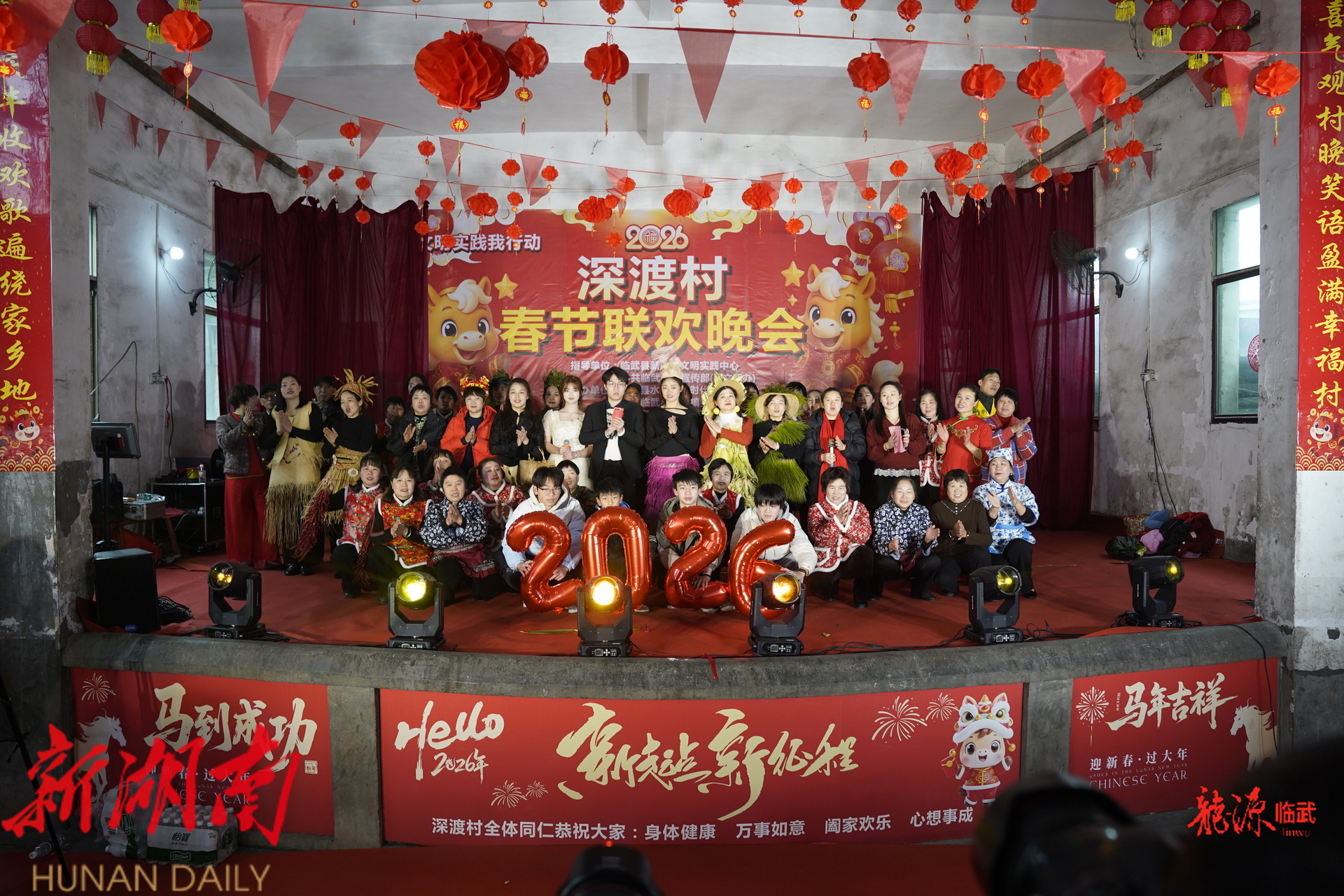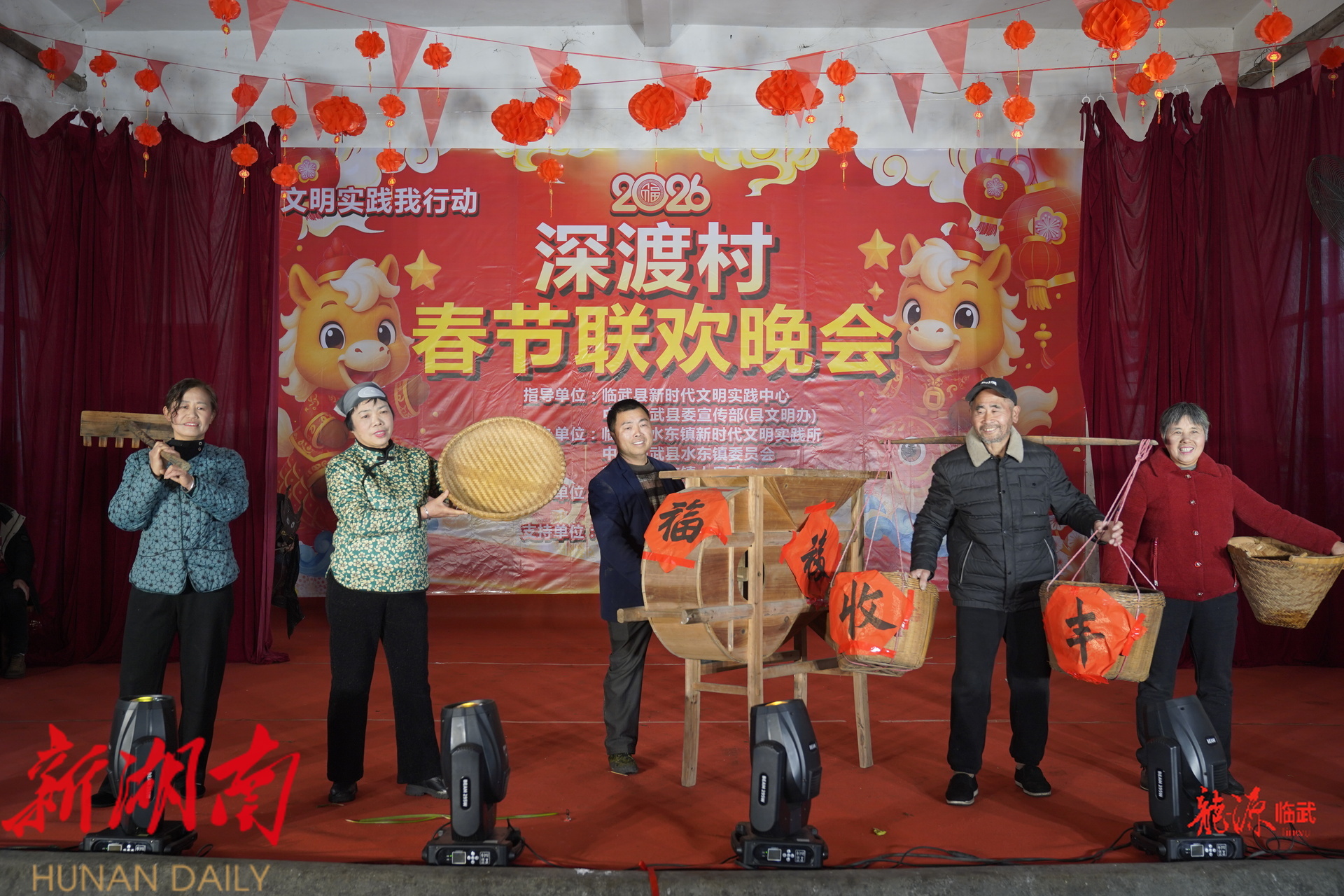 龙源临武客户端2月9日讯(记者 蒋淑芬)灯笼悬高空,美意醉腊月。2月9日,临武县水东镇深渡村新时代文明实践站里张灯结彩喜气盈庭,由临武县新时代文明实践中心指导,水东镇新时代文明实践所主办,深渡村新时代文明实践站承办的 “乡韵迎春・幸福绽放”2026年春节联欢晚会浓情启幕。