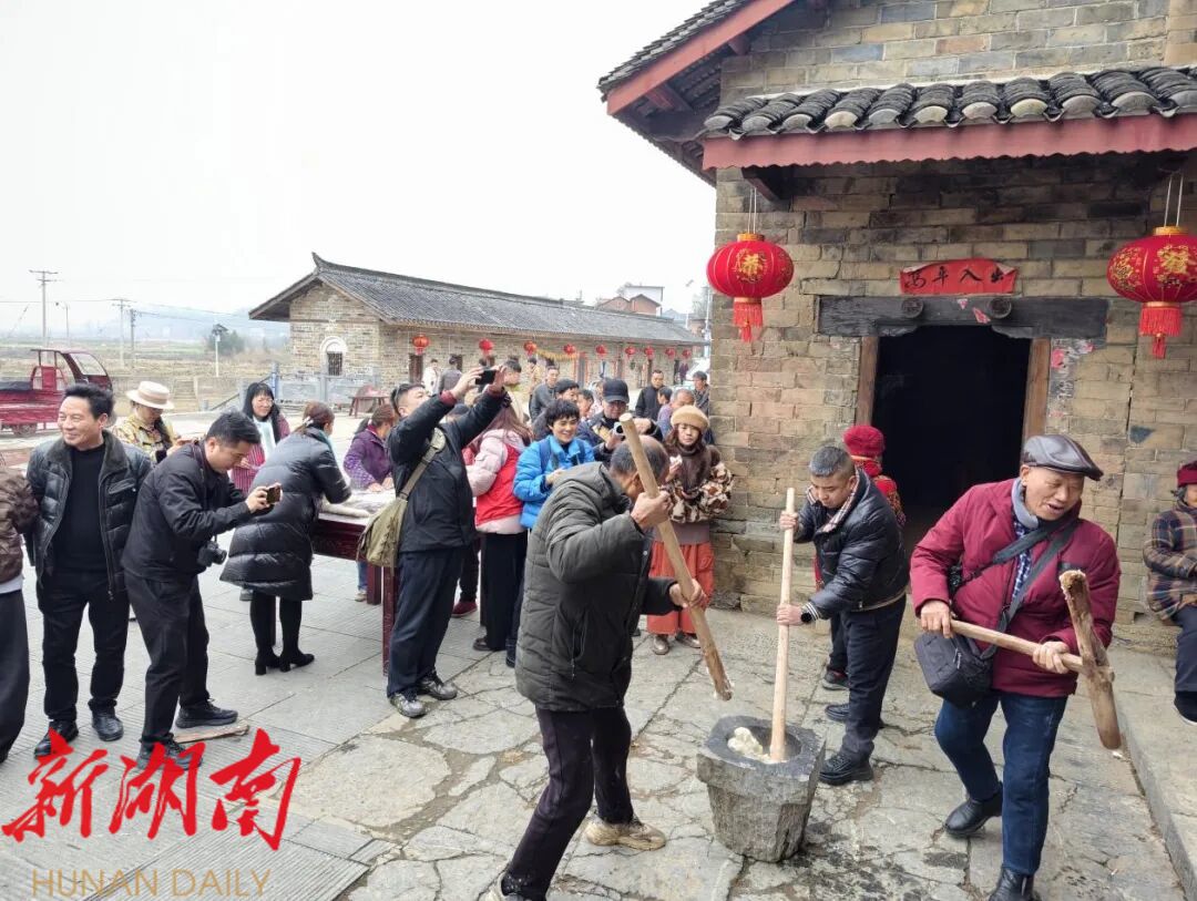 活动现场热气腾腾、笑语喧天。杀年猪的热闹、打糍粑的铿锵、磨豆腐的温润,勾勒出最地道的乡土年景;石臼起落间,糯米化作软糯香甜的糍粑,柴火灶上豆腐飘香,满是岁月沉淀的家常滋味。