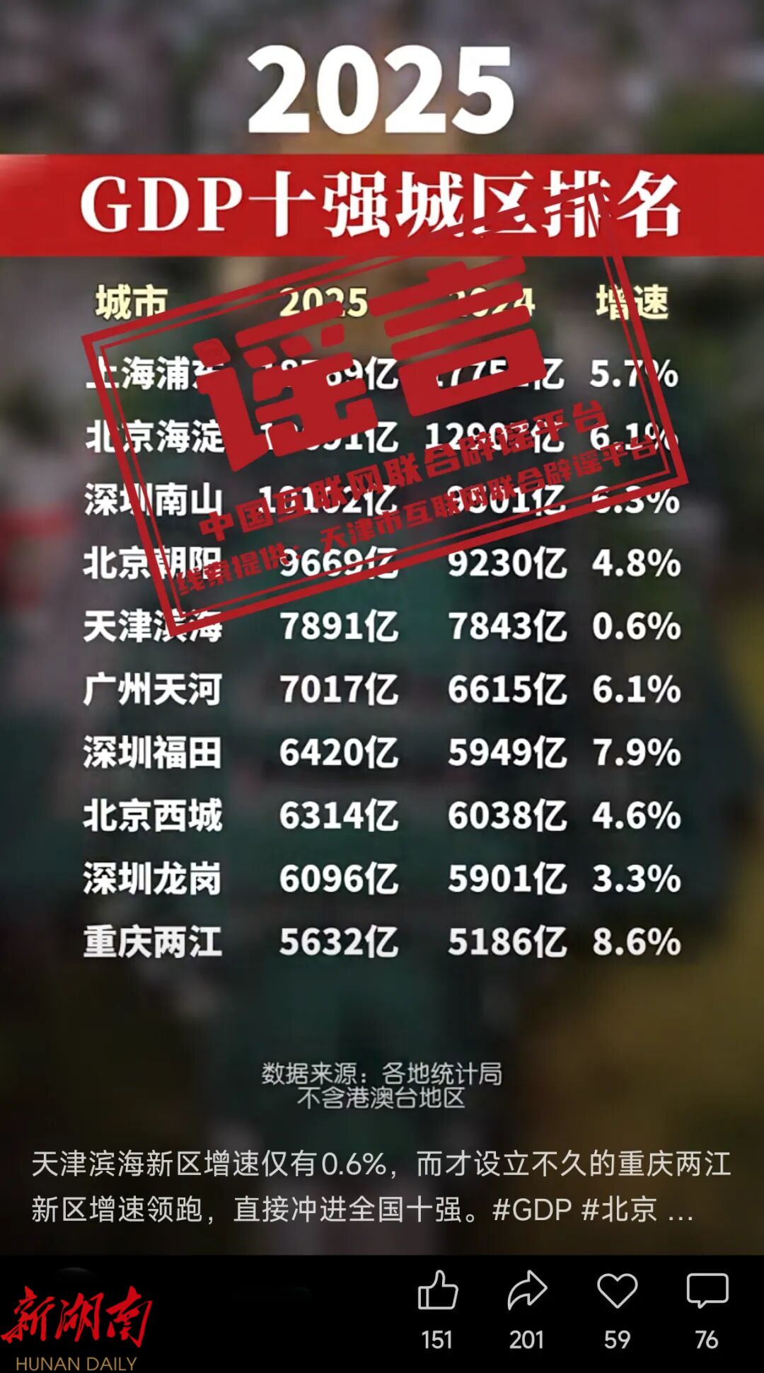 网传“滨海新区2025年GDP增速0.6%”系虚假信息