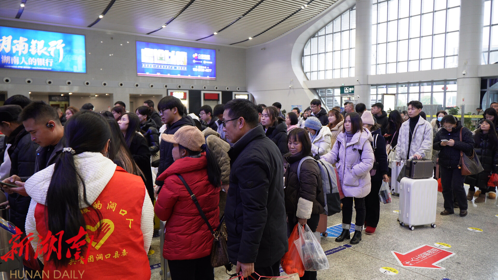 据悉,此次春运期间,洞口高铁站联动铁路公安、青年志愿者等多方力量,形成保障合力。青年志愿者们身着统一服装,在候车厅、检票口、安检处等关键区域,为老幼病残孕等重点旅客提供帮扶引导、咨询解答等服务;铁路公安民警全时段坚守岗位,强化车站及周边安全管控,筑牢安全防线,与车站工作人员、志愿者携手,全方位保障旅客出行安全与便捷。