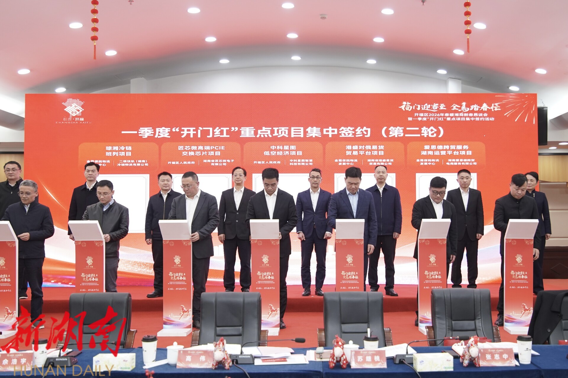 湖南日报·新湖南客户端2月9日讯(记者 陈新 吴若晴)今天,开福区举行一季度“开门红”重点项目集中签约仪式,一批涵盖半导体、智能制造、数字经济、现代物流等领域的优质项目落地开福。此次共签约16个重点项目,吹响了新一年奋进的号角。