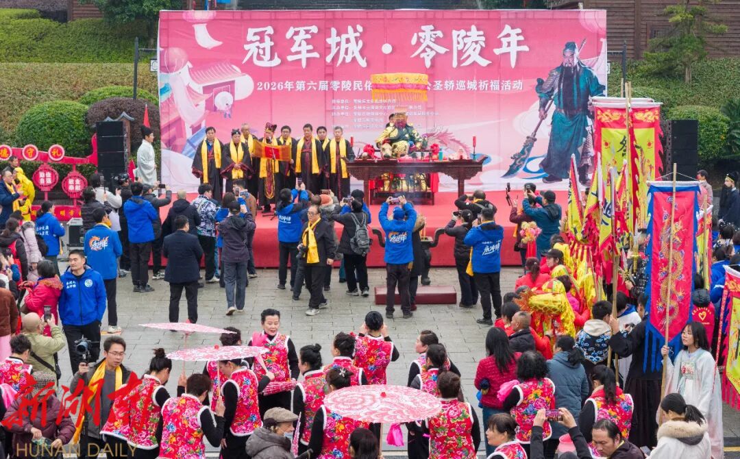 湖南日报·新湖南客户端2月10日讯(通讯员 陈斌 郑炜)龙腾狮舞迎新春,圣轿巡城贺佳节。2月9日,“冠军城·零陵年”2026年第六届零陵民俗庙会之关公圣轿巡城祈福活动在永州零陵东山景区精彩启幕,为古城零陵增添了浓厚的传统年节氛围与文化魅力。