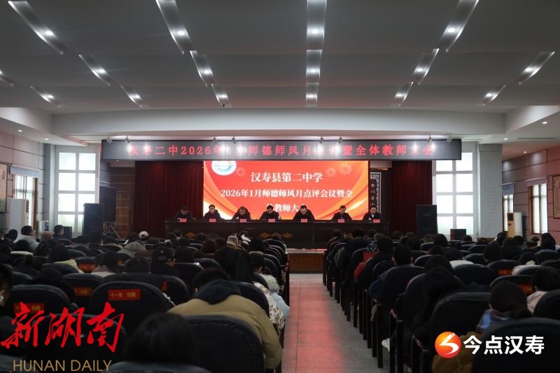汉寿融媒2月10日讯(通讯员:帅吴悠)近日,汉寿二中召开2026年1月师德师风月点评会议暨全体教师大会,总结学期工作,凝聚共识,为新学期各项工作做好准备。