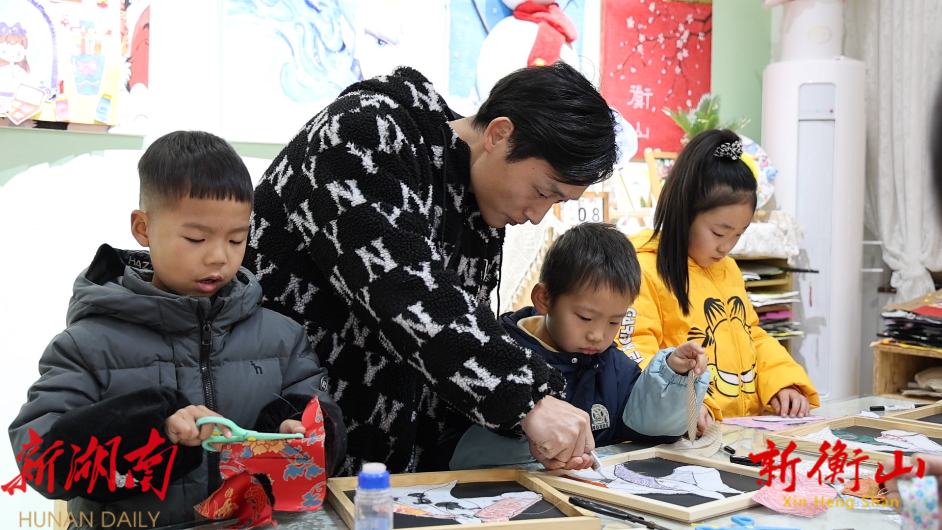 【新春走基层】衡山县:巧手拼贴宋锦画 萌娃喜迎马年到