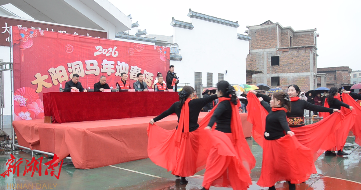 湖南日报·新湖南客户端2月10日讯(通讯员 范姜茜子 ) 近日,宁远县天堂镇大阳洞村服务中心前坪张灯结彩、暖意融融,一场集文艺表演、趣味运动于一体的迎春主题活动热闹举行,全村老少欢聚一堂,共庆新春、共话乡村发展新蓝图。