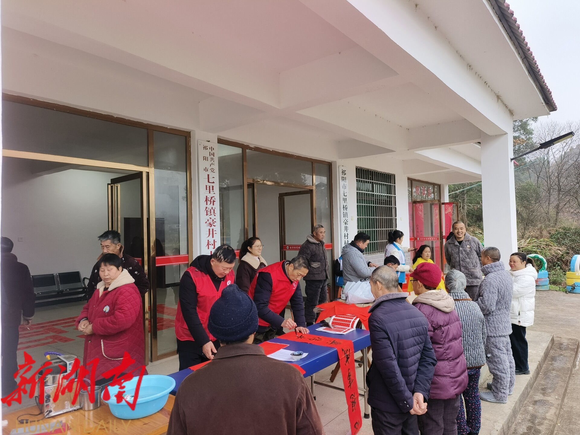 文化惠民,情暖乡邻 。 镇内多个农家书屋联合祁阳市文联开展“写春联、拍全家福”活动,吸引众多村民热情参与。各村还依托农家书屋与新时代文明实践站,组织阅读分享、爱心理发等便民服务,在温馨互动中传递浓厚乡情。