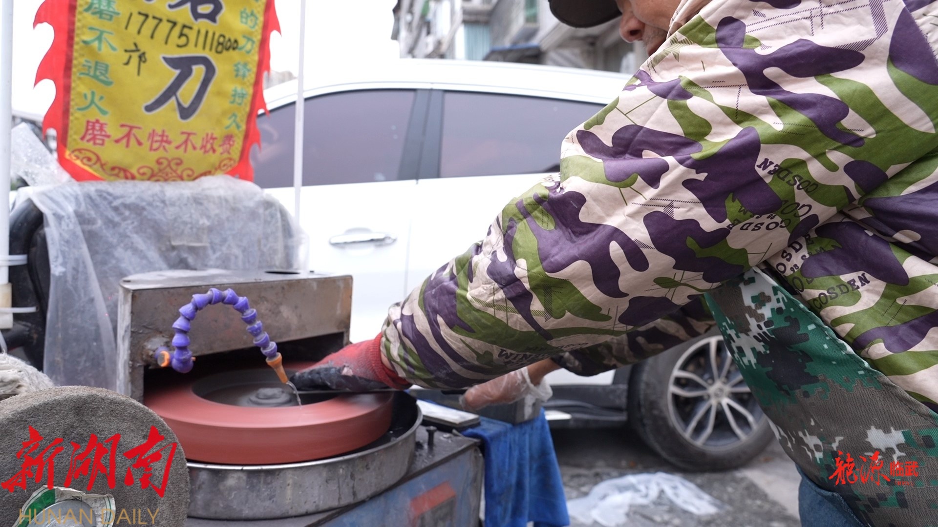 龙源临武客户端2月11日讯(记者 雷婉婷 黄玲艳)新春临近,年味渐浓,家家户户都在为一年中最重要的一顿团圆饭忙碌着。一把锋利称手的菜刀,是厨房里不可或缺的“老伙计”。在咱们临武县,有一位70岁的老人邝松强,古稀之年,却学起了新本事——磨刀。他靠着一双手、一块石,让千家万户的菜刀重焕锋芒,也为自己“磨”出了一份踏实、温暖的幸福晚年。