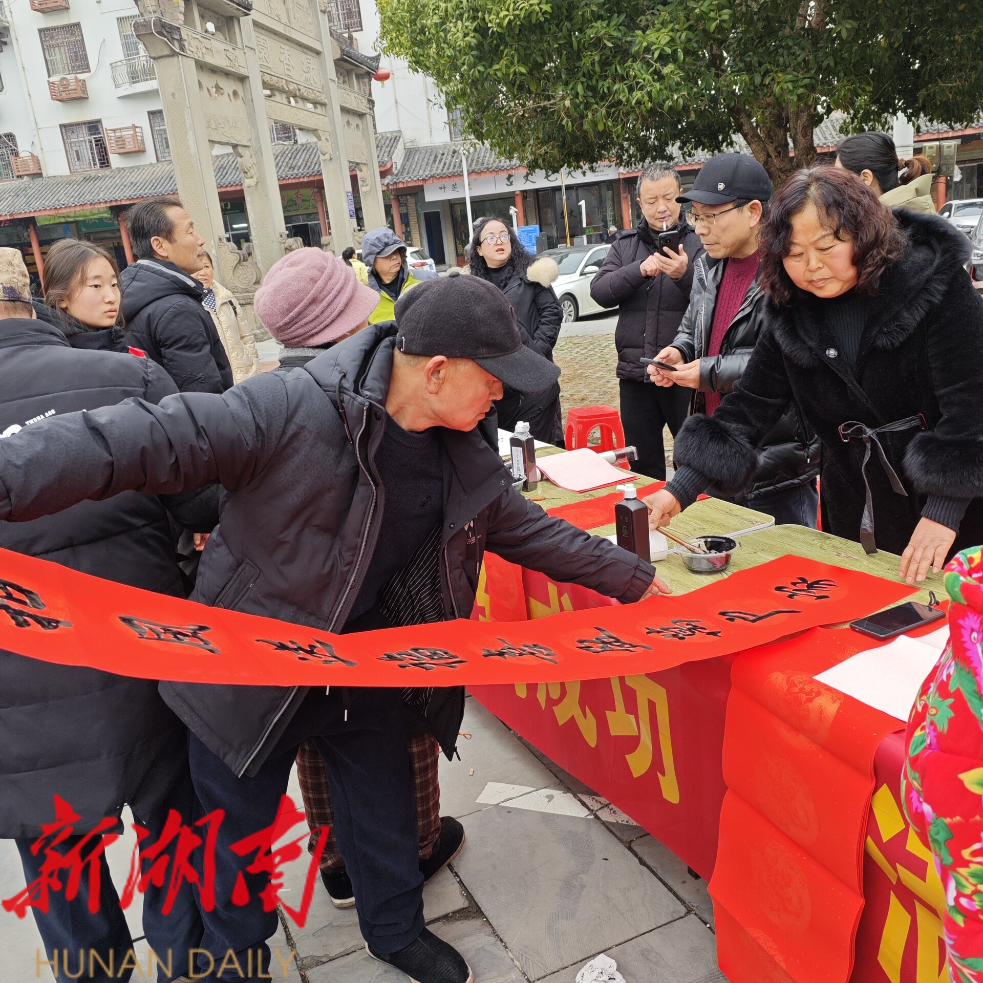 新湖南客户端2月11日讯(通讯员 向畅)2月11日,为迎接新春佳节,营造喜庆祥和的社区氛围,湘西土家族苗族自治州古丈县红星社区居委会联合县书法家协会、县美术家协会,在会展中心广场开展了以“马到成功 福满社区”为主题的新春赠联活动。活动旨在以笔墨承载祝福,以传统文化温暖邻里,为社区居民送上诚挚的新年问候与美好的未来祝愿。