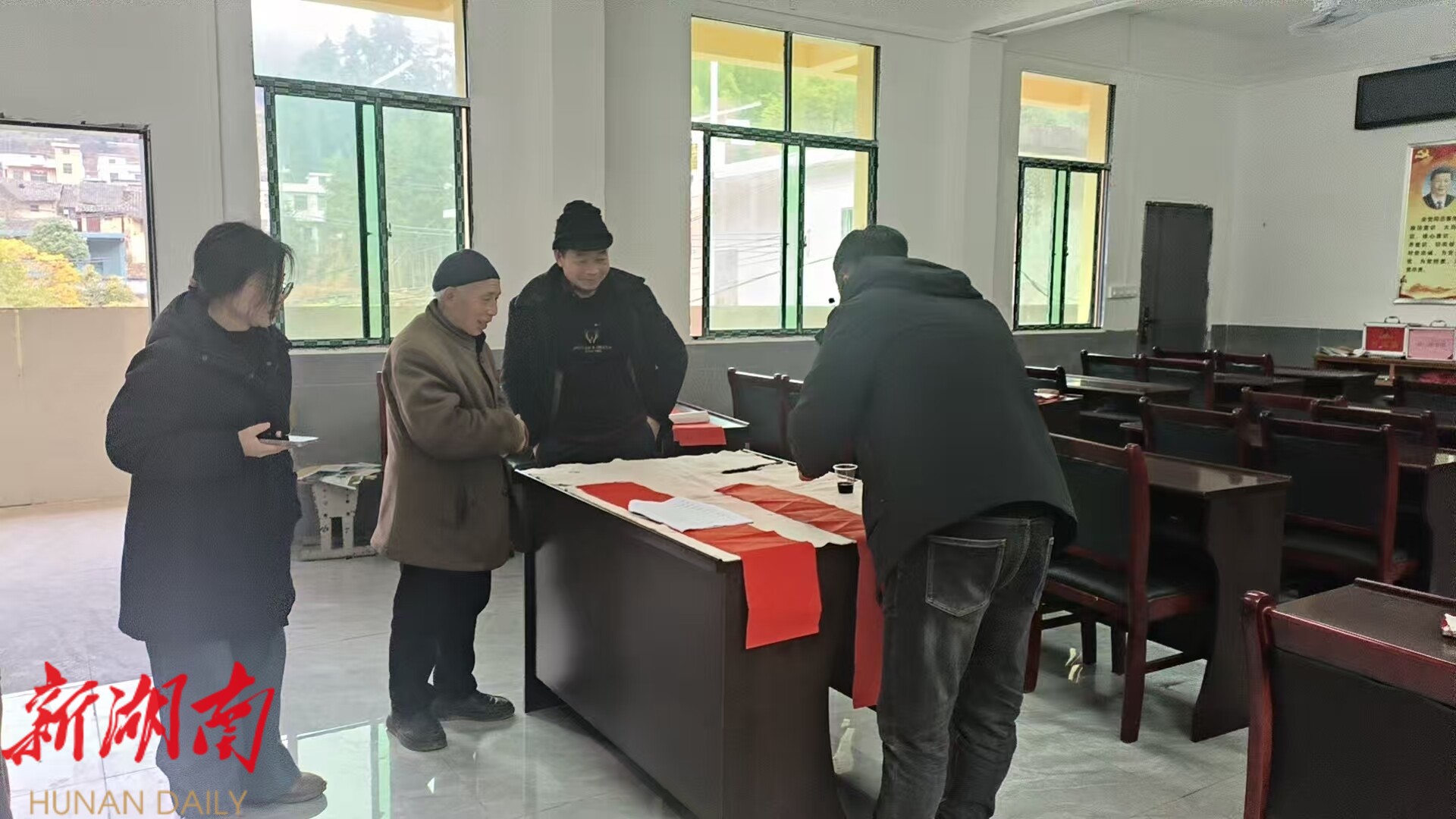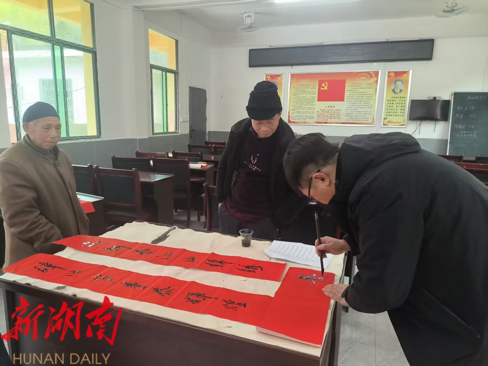 新桂阳2月11日讯(通讯员 贺存飞 王琦 )新春将至,年味渐浓。为弘扬中华优秀传统文化,营造喜庆祥和的节日氛围,2月11日, 白水瑶族乡扶苍山村委会举办“迎新春、写春联、送福字、暖民心”志愿服务活动,邀请本土书法爱好者现场挥毫泼墨,为村民免费书写春联与福字。