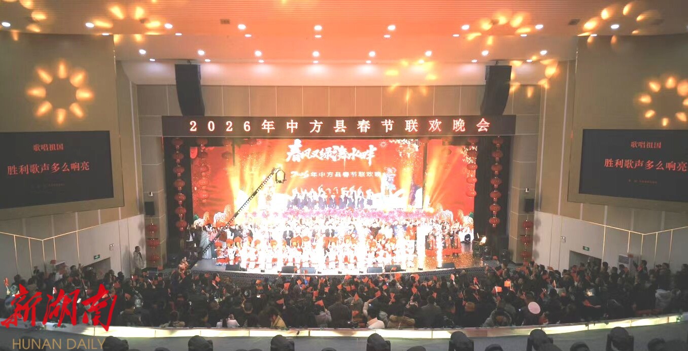 最终,晚会在《领航》的恢宏歌声与全场齐唱《歌唱祖国》的激昂旋律中圆满落幕。这场融合艺术性与地方特色的文化盛宴,不仅丰富了干群精神文化生活,更集中展示了全县精神文明建设与社会发展的丰硕成果,生动绘就了一幅中方经济社会高质量发展的新画卷,在新春伊始凝聚起奋力建设社会主义现代化新中方的磅礴力量,为“十五五”开好局、起好步奏响奋进序曲。