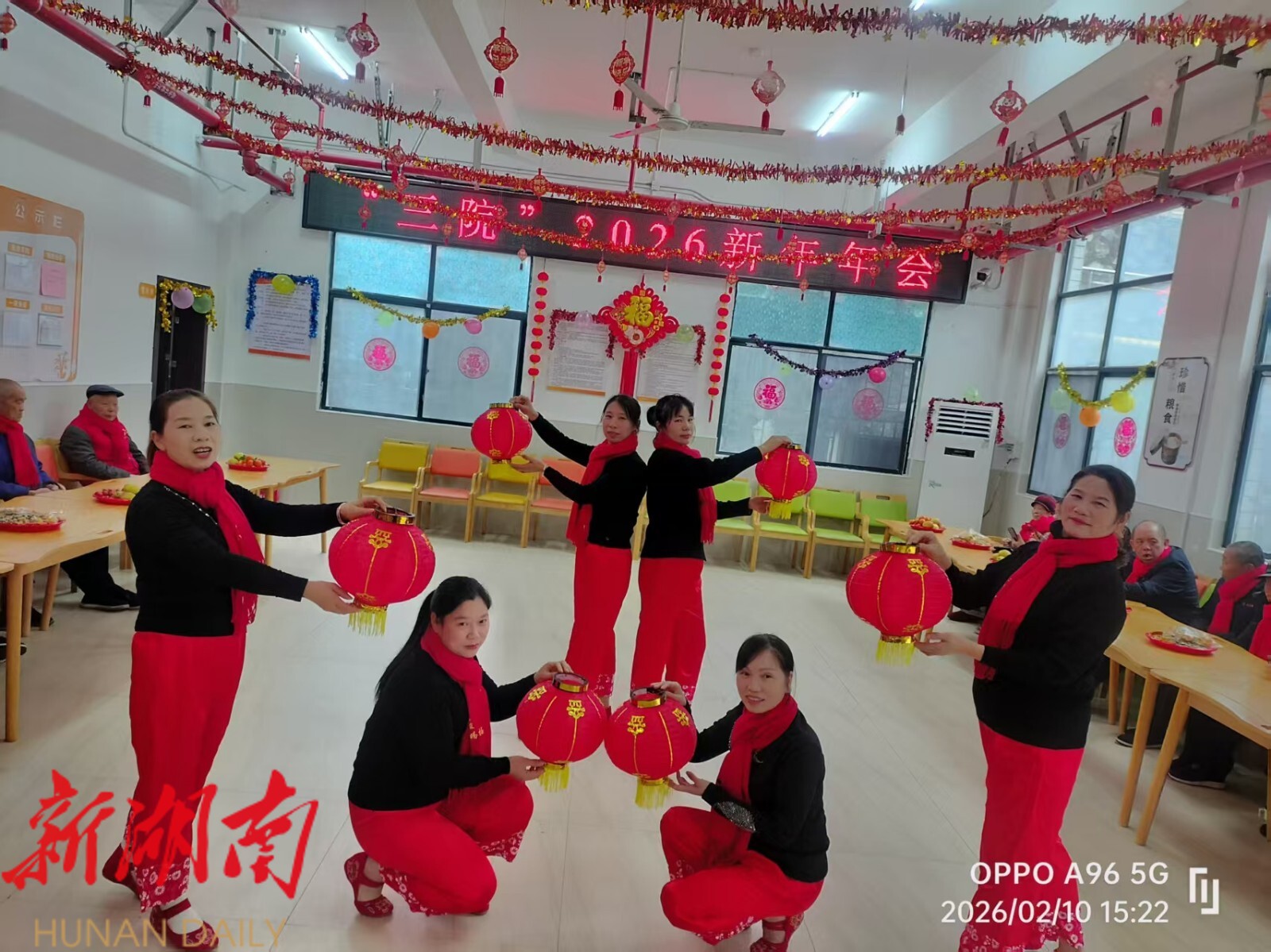 湖南日报·新湖南客户端2月12日讯(通讯员 揭万章)金蛇辞旧岁,骏马报新春。为弘扬中华民族尊老敬老的传统美德,让老人度过一个欢乐、温馨的新春佳节,2月10日,永兴县社会福利院隆重举办2026新年年会,工作人员与院内老人及家属代表欢聚一堂,载歌载舞迎新春。