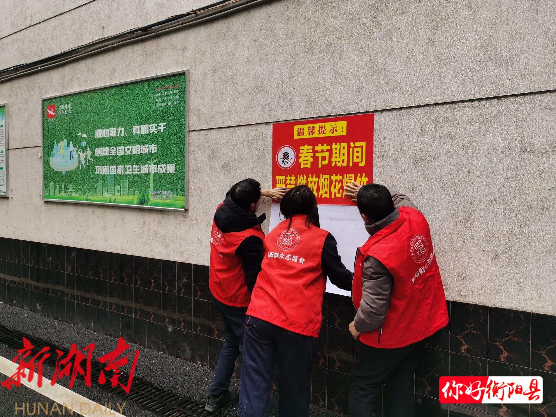 衡阳县融媒2月12日讯(记者:王佩璐) 春节将至,年味渐浓。为积极响应全县禁止燃放烟花爆竹工作统一部署,近日,县融媒体中心组织干部职工志愿者,深入责任路段及居民楼栋,开展禁燃禁放宣传志愿服务活动,以实际行动守护新春佳节的祥和与安宁。