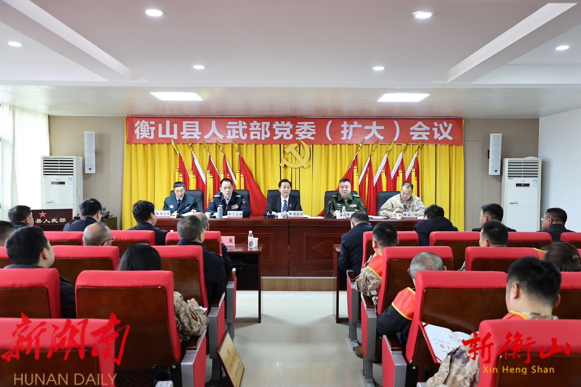 新衡山客户端2月12日讯(记者:刘永欢 周彭斌)2月12日,县人武部党委(扩大)会议召开,深入学习贯彻习近平强军思想及 党的二十届四中全会精神,传达学习警备区党委全会精神,全面总结2025年工作,安排部署2026年任务。衡阳市政协副主席、衡山县委书记、县人武部党委第一书记戴新贤出席会议并讲话。