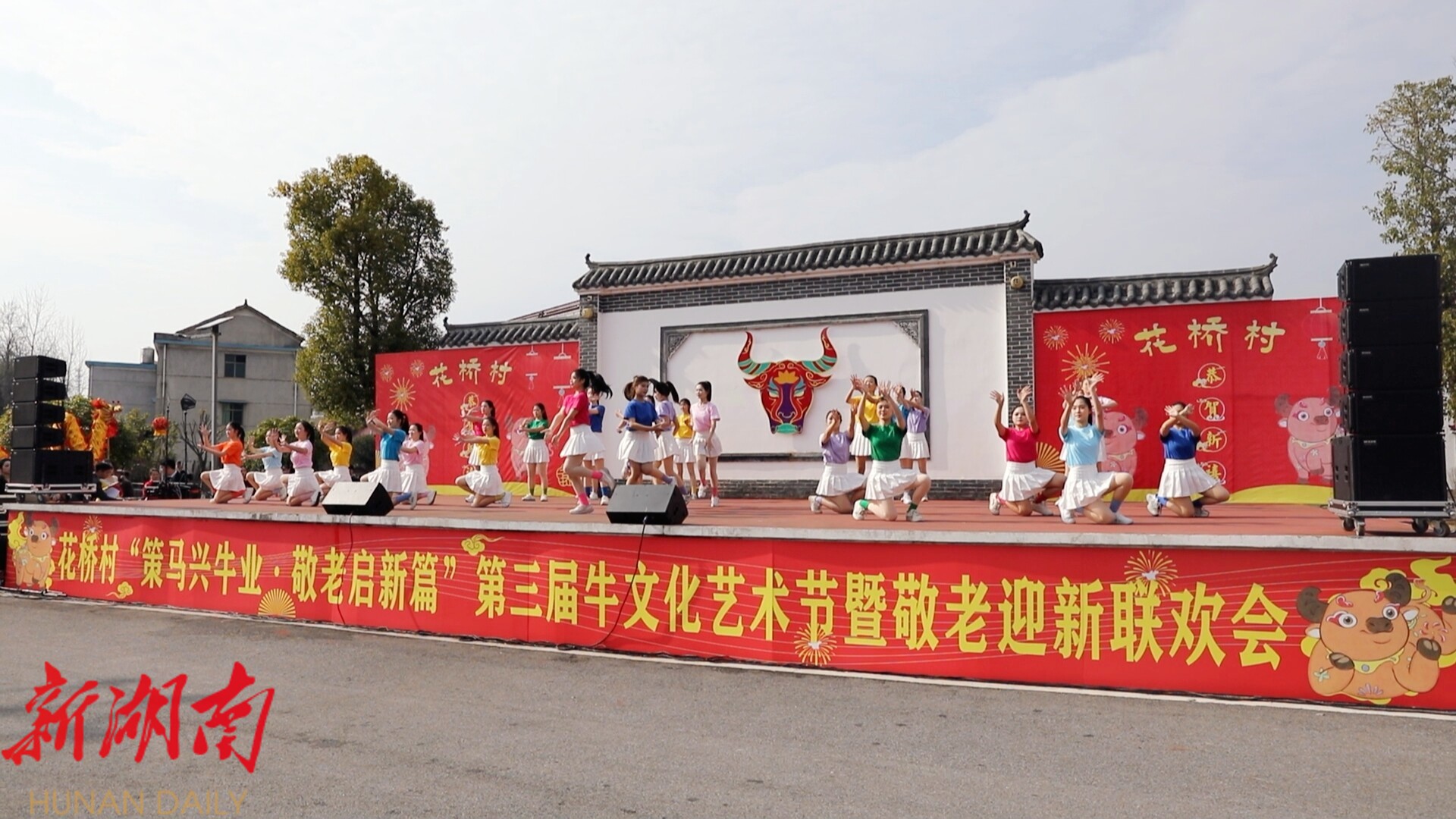 湖南日报·新湖南客户端2月12日讯(通讯员 曹富蓉)11日下午,冷水江市铎山镇花桥村“策马兴牛业·敬老启新篇”第三届牛文化艺术节暨敬老迎新联欢会,在该村文化广场举行。冷水江市人大常委会主任孙纬辉出席。