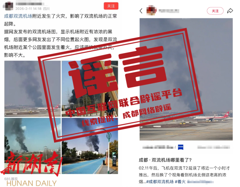 辟 谣 网传“成都双流机场火情致航班延误”消息不实