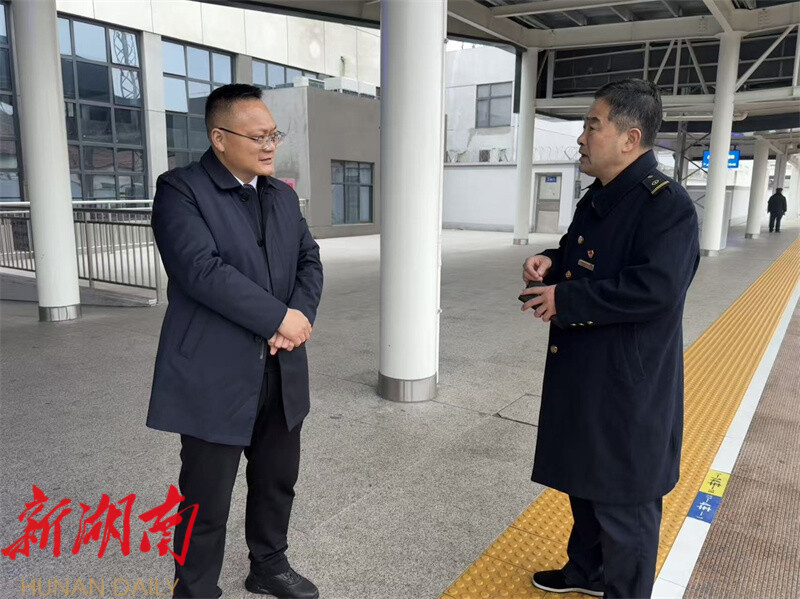 在岳阳南站,方克君察看春运保障落实情况,详细询问运力调配、应急处置、便民服务及值班值守安排,检查站内安全巡查、旅客安检等关键环节。他要求,相关单位要守牢春运安全底线,强化安全管控、优化服务,保障群众平安顺畅出行。