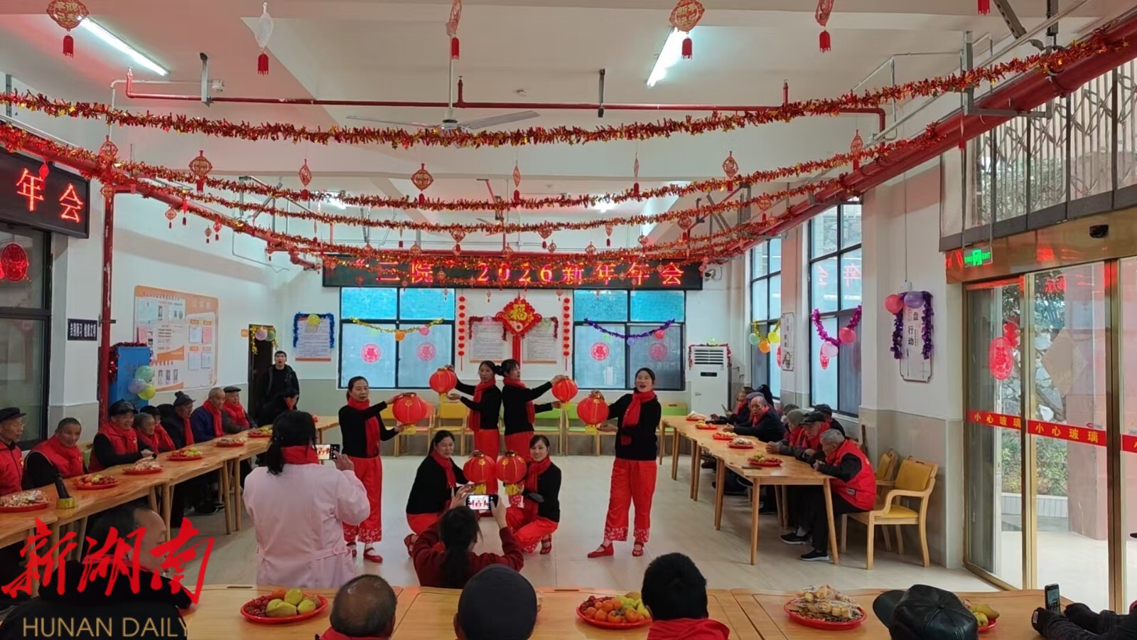 永兴县“三院”新年年会气氛热烈,老人与员工携手献艺,灯笼舞翩跹、大合唱激昂、手势舞灵动,生动诠释了“老有所乐、老有所为”的晚年风采;鲤鱼塘镇敬老院为长者送上新春贺岁红包,寓意添福添寿,情暖人心;银都颐养中心则趣味游戏接连不断,欢声笑语汇成一片热闹海洋。